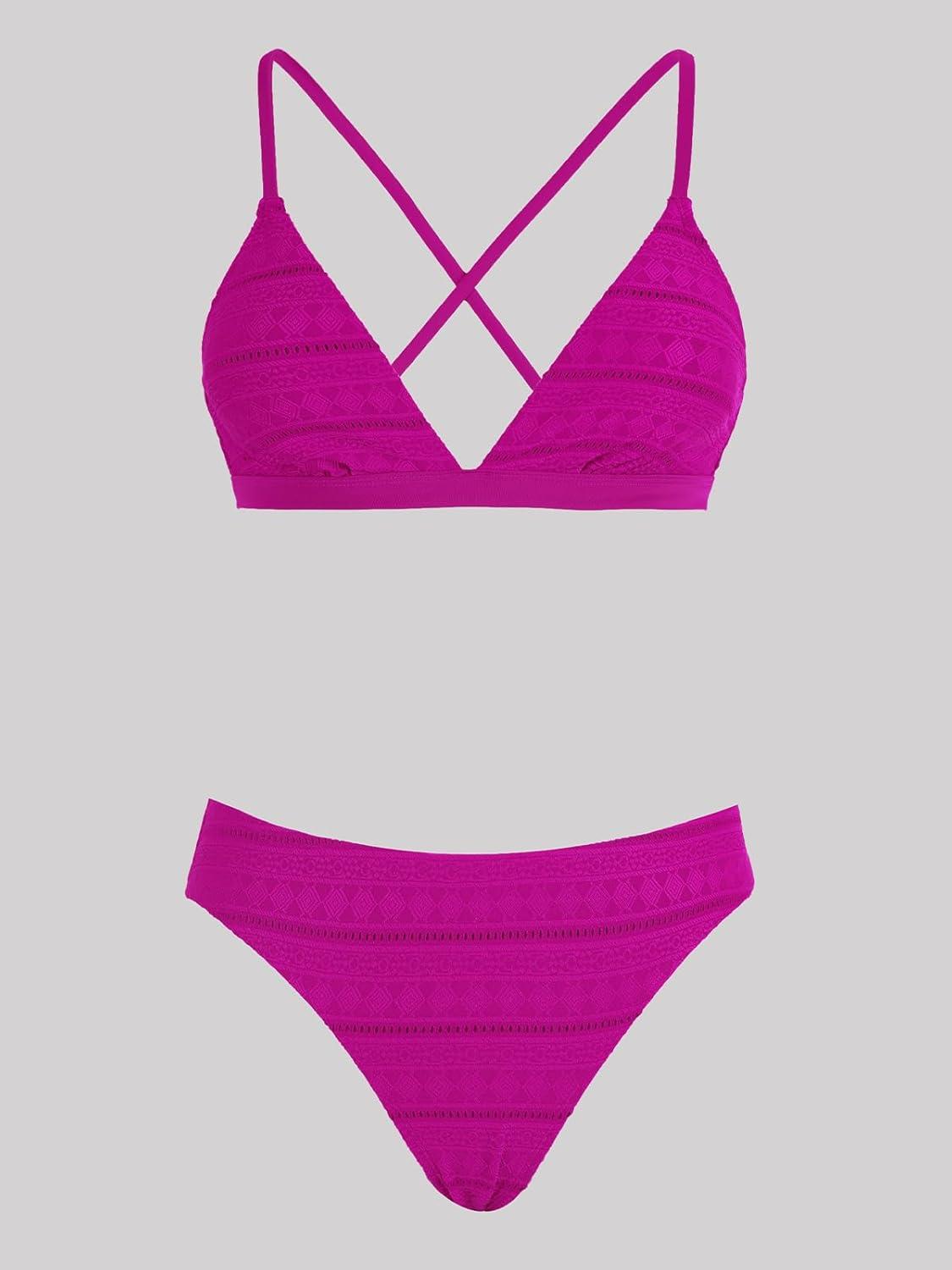 CUPSHE Bikini Set for Women Two Piece Swimsuits V Neck Low Rise Crisscross Back Self Tie Spaghetti Straps(Magenta)