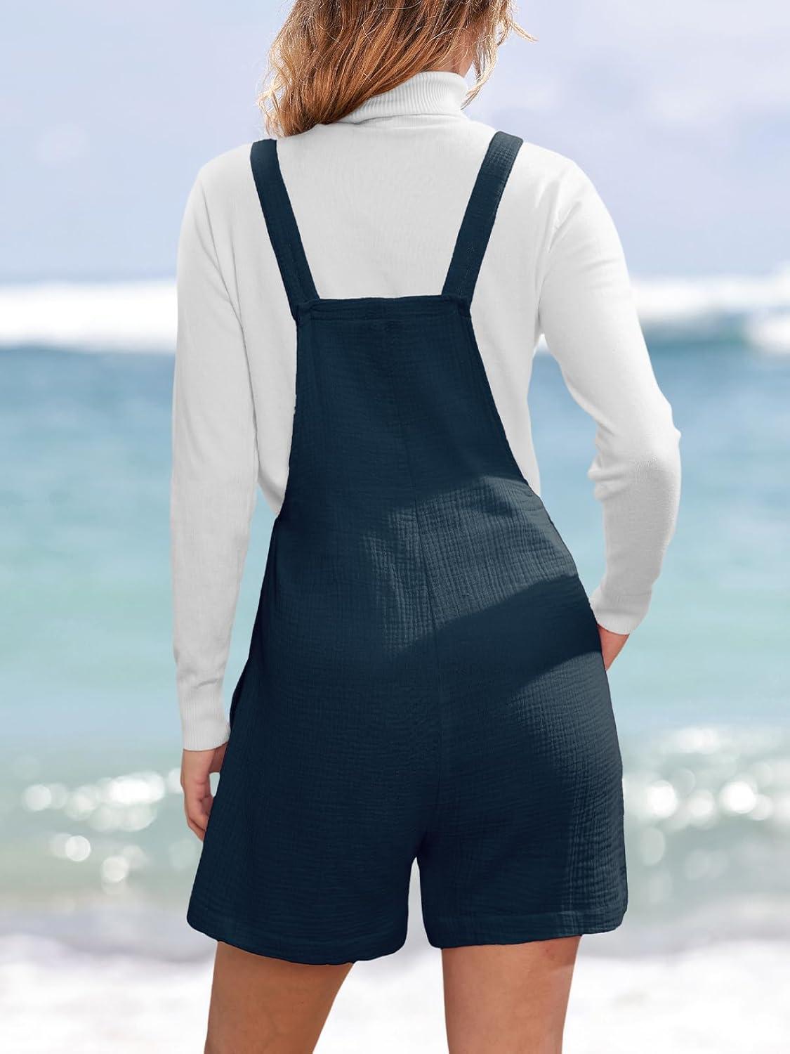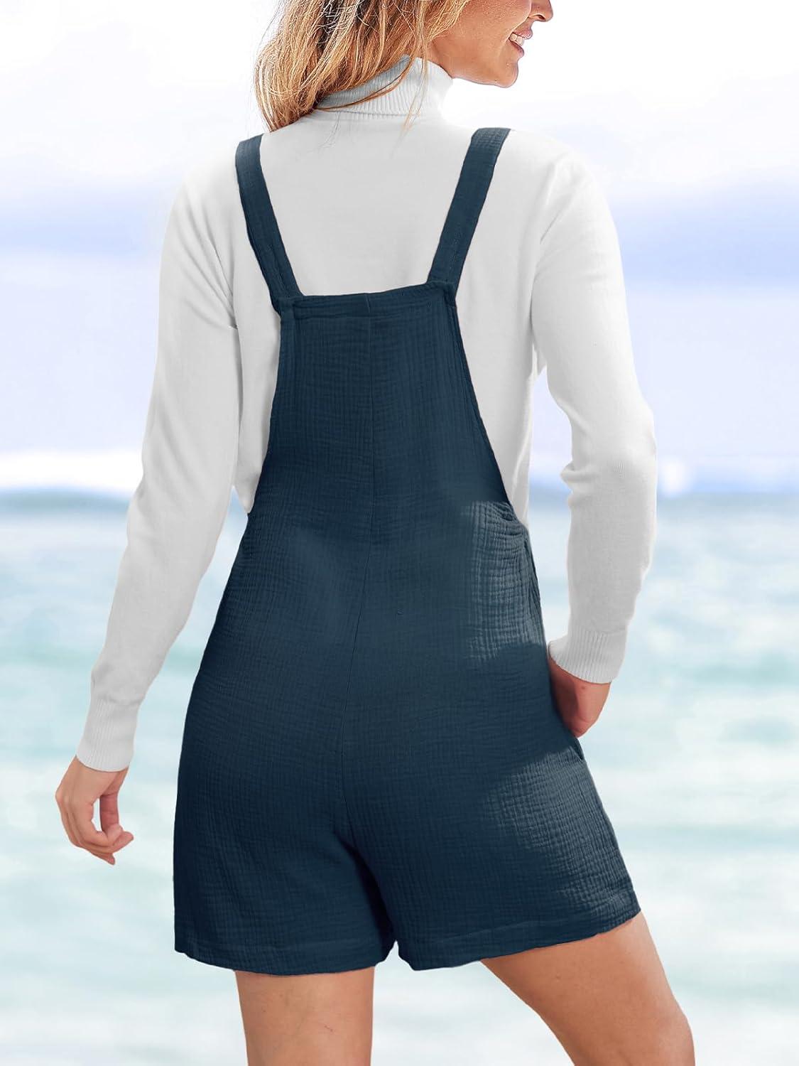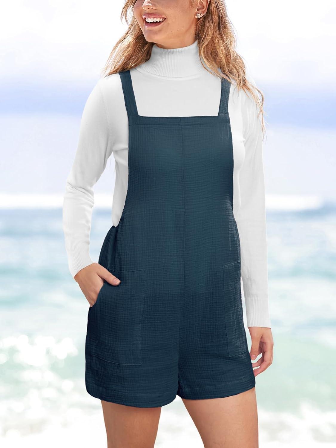 CUPSHE Casual Cotton Loose Rompers Fit Summer Pockets Sleeveless Wide Strap Square Neck Outfit(Ocean Blue)