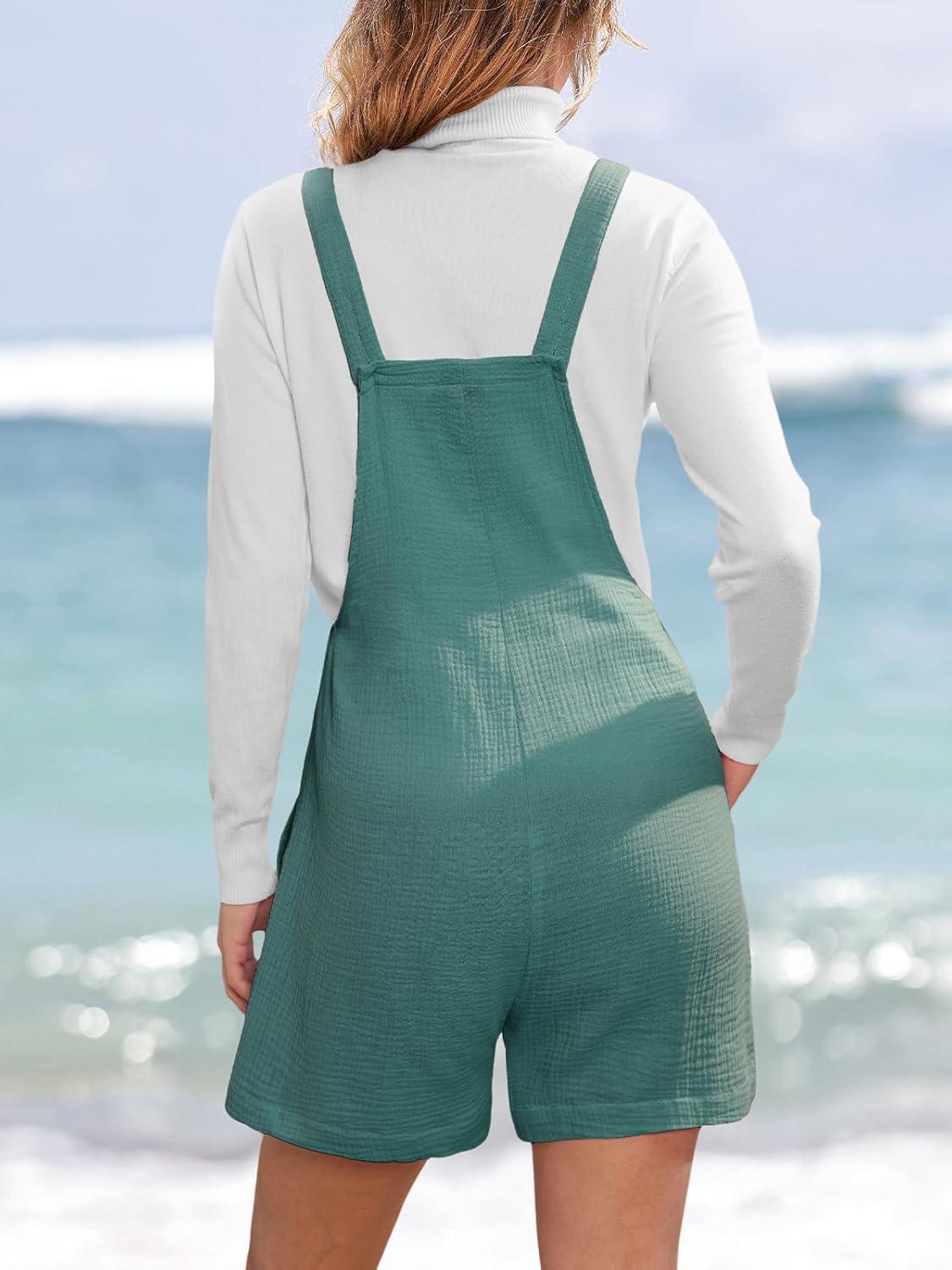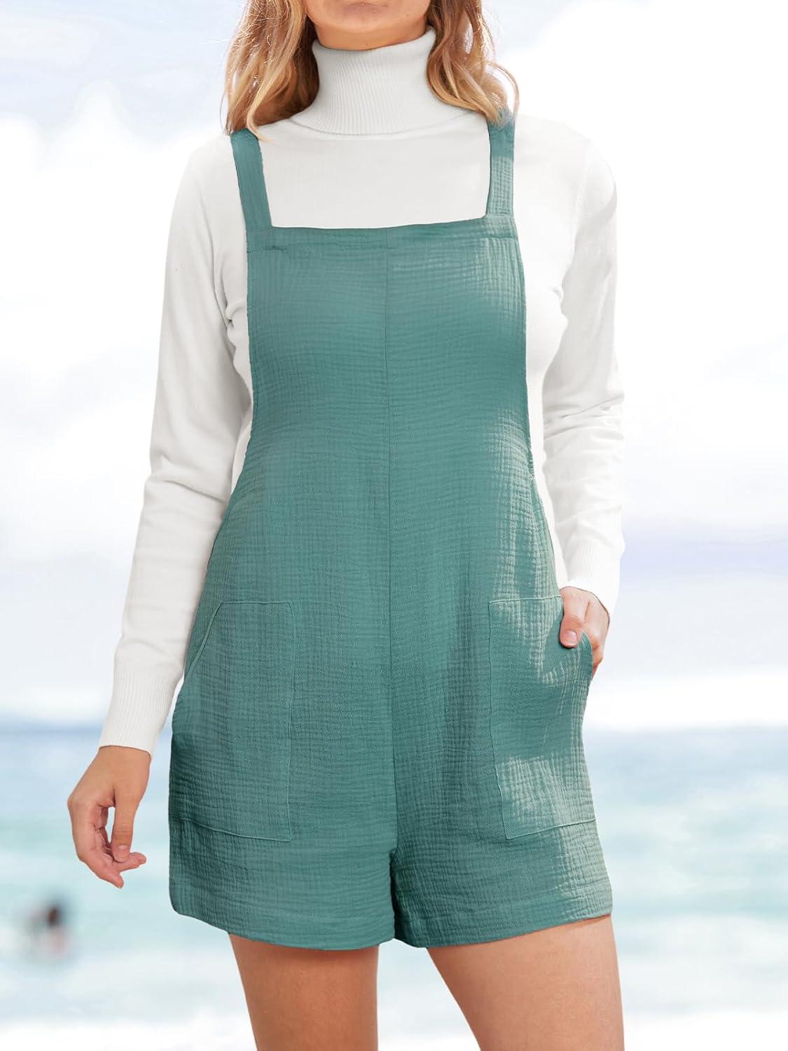 CUPSHE Casual Cotton Loose Rompers Fit Summer Pockets Sleeveless Wide Strap Square Neck Outfit(Ocean Blue)