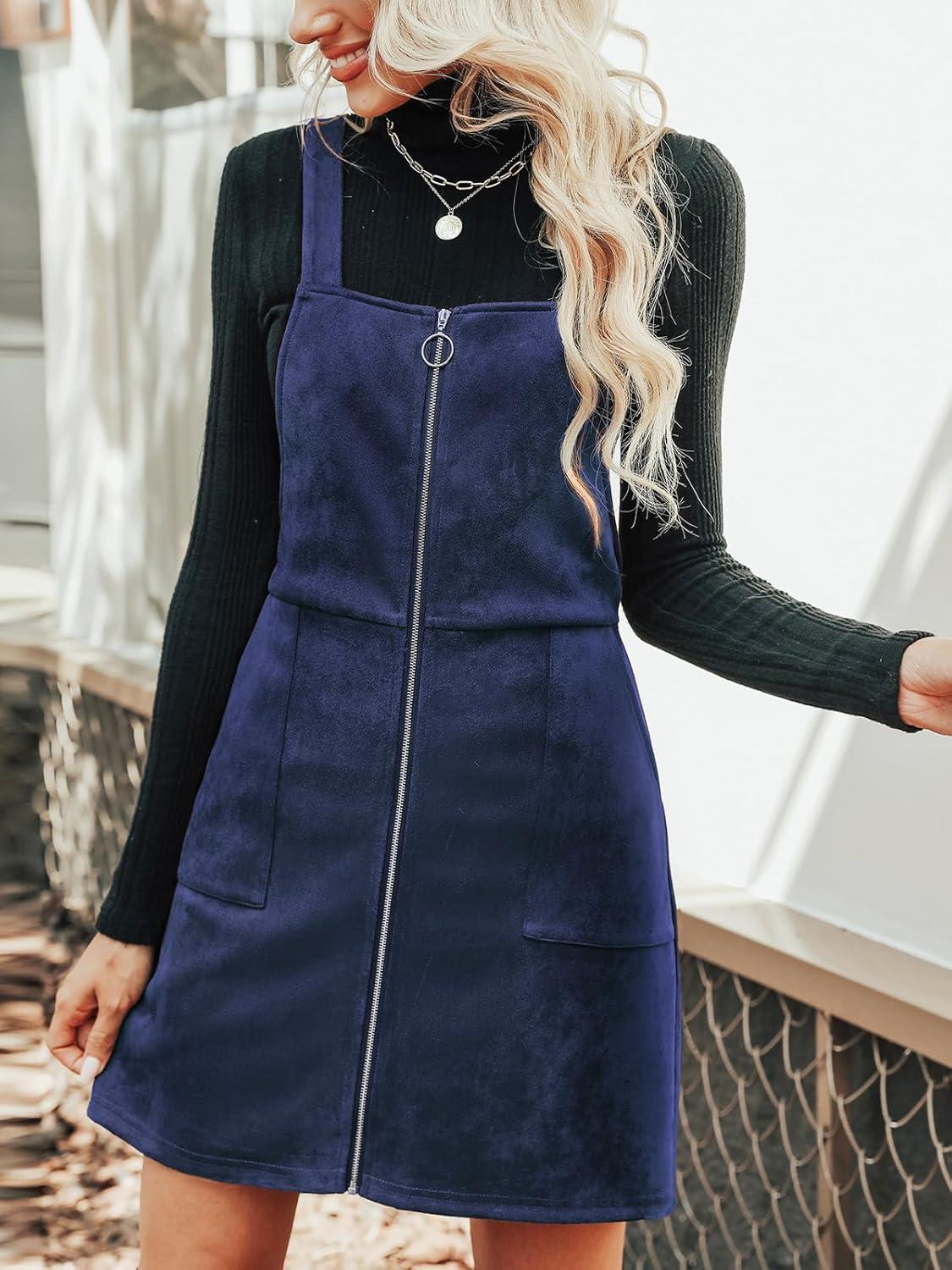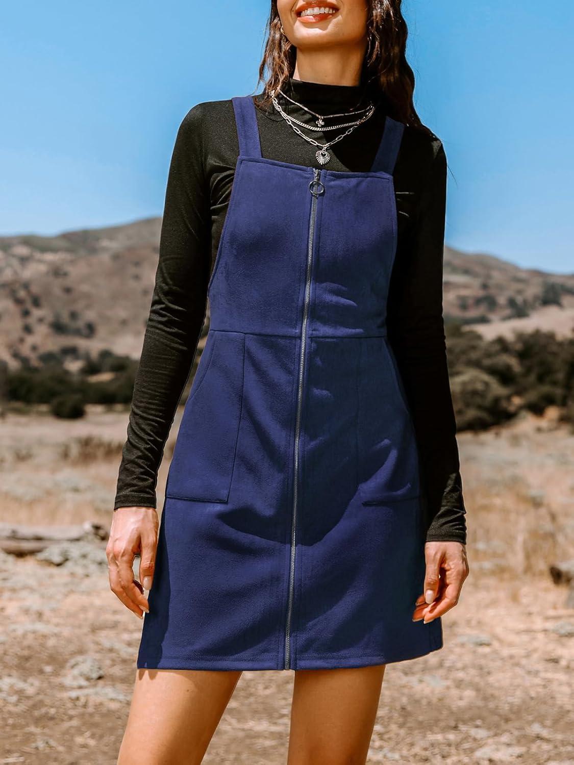 Get up to 60% off on CUPSHE Faux Suede Mini Fall Dresses for Women Square Neck Pull Ring Zipper Front Pockets Wide Straps Casual Autumn Dress(Blue) styles during our winter sale event.