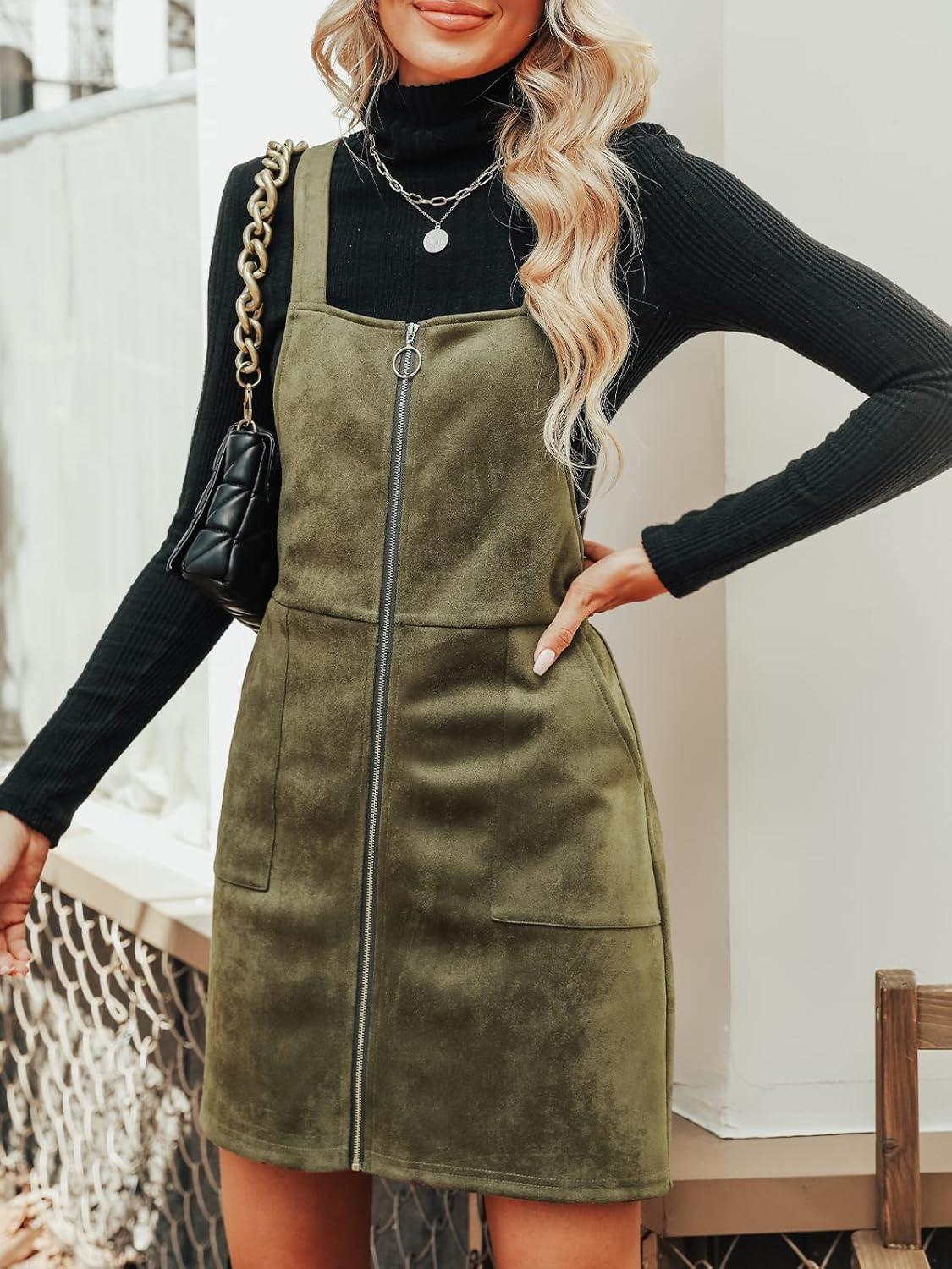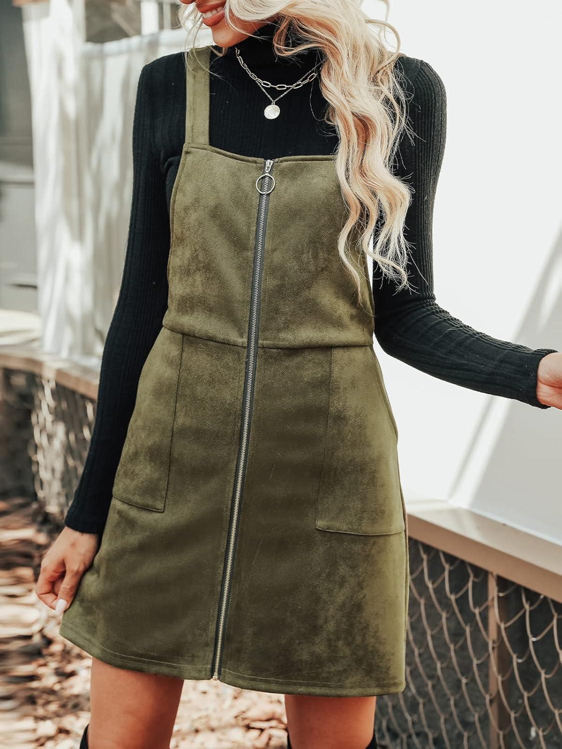 Don’t miss out on our limited-time offer: buy CUPSHE Faux Suede Mini Fall Dresses for Women Square Neck Pull Ring Zipper Front Pockets Wide Straps Casual Autumn Dress(Dark Green), get {accessory} 50% off!