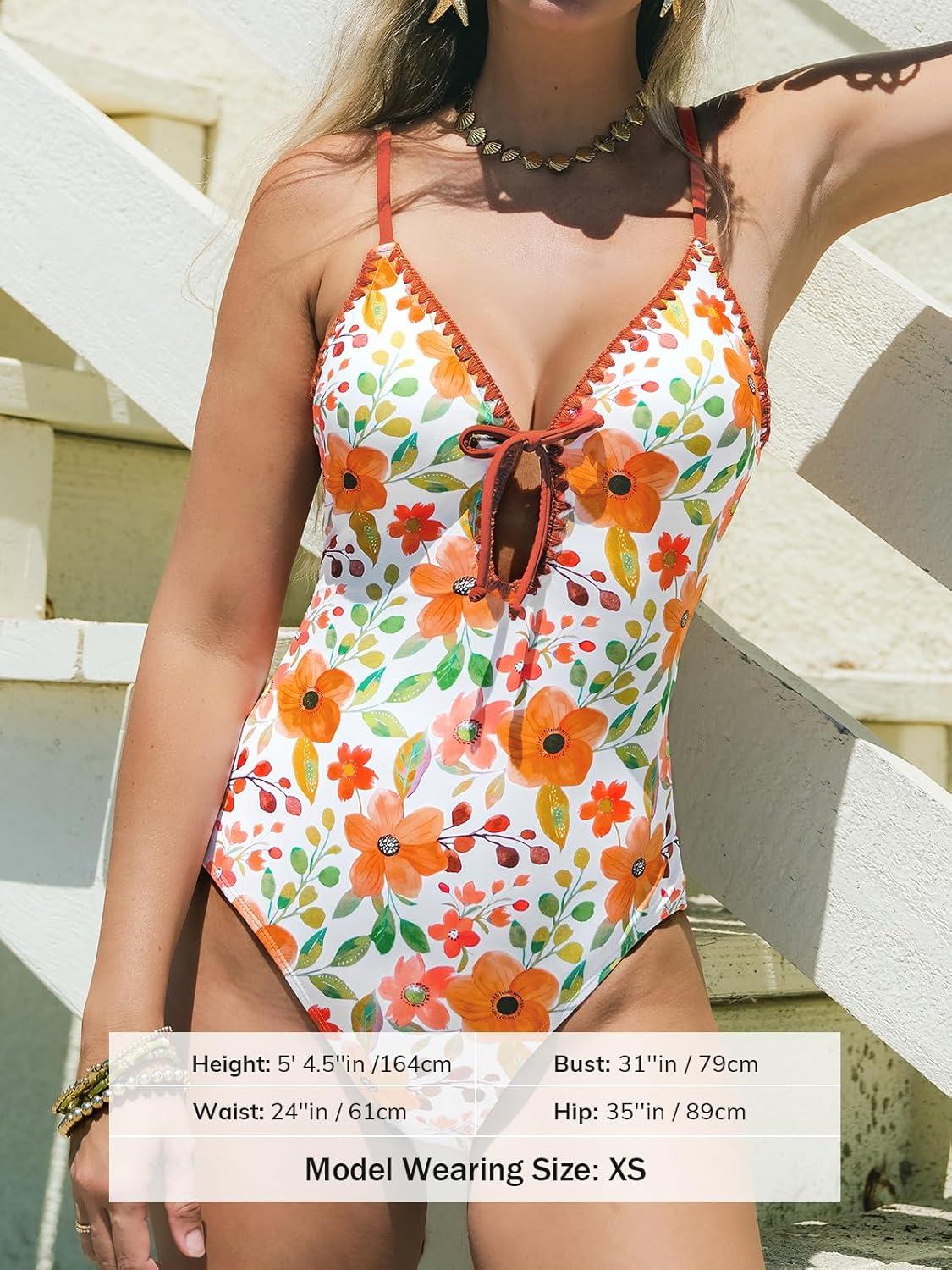 Be the first to review “CUPSHE One Piece Swimsuit Women Keyhole V Neck Color Block Bathing Suit Cutout Back Crisscross Self Tie Swimwear(White/Orange Floral)”