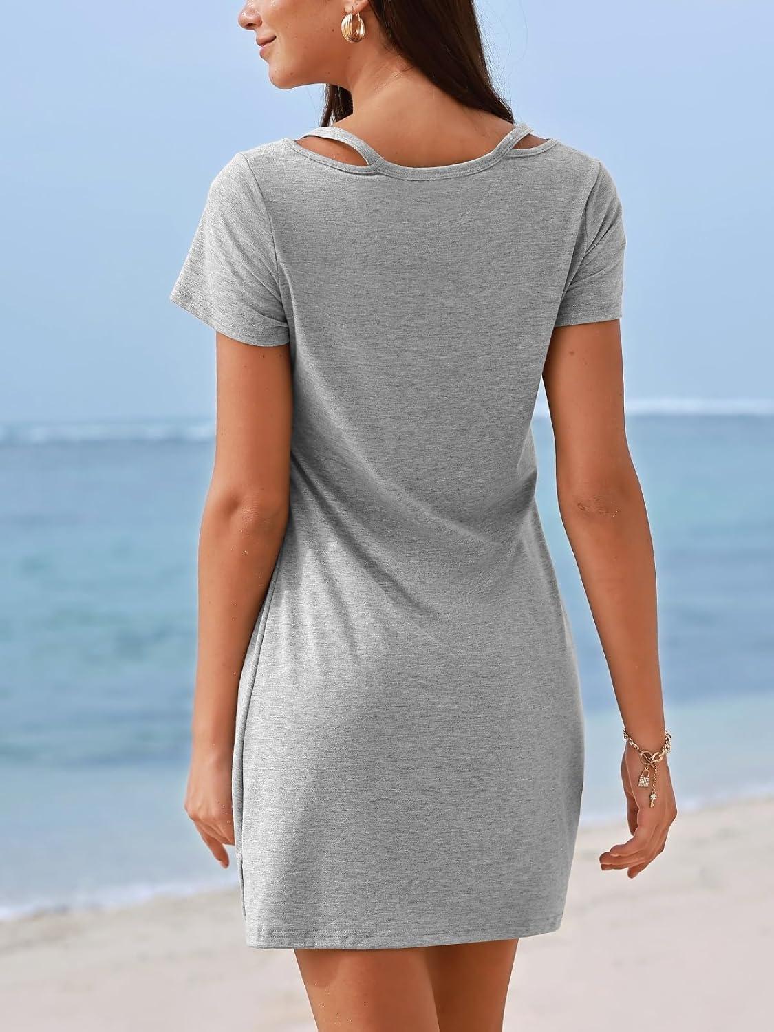 CUPSHE Summer Dresses for Women Short Sleeve Twisted Casual T Shirt Dress Beach Swimsuit Coverup(Grey)