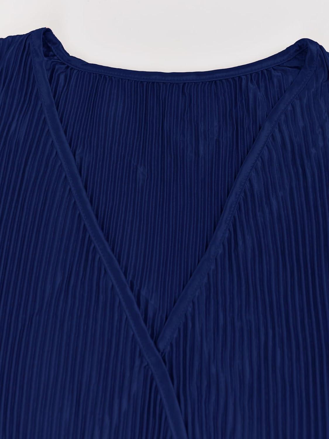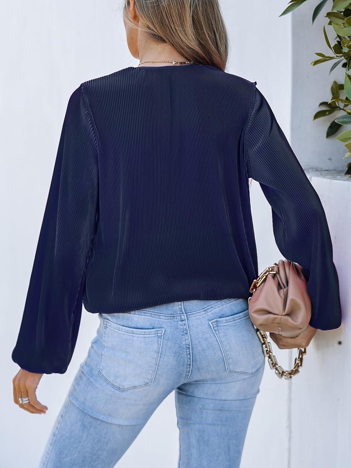 CUPSHE V Neck Wrap Velvet Tops Dressy Causal Long Sleeve Business Work Blouses Loose Fit Shirts Vacation Outfits(Dark Blue)