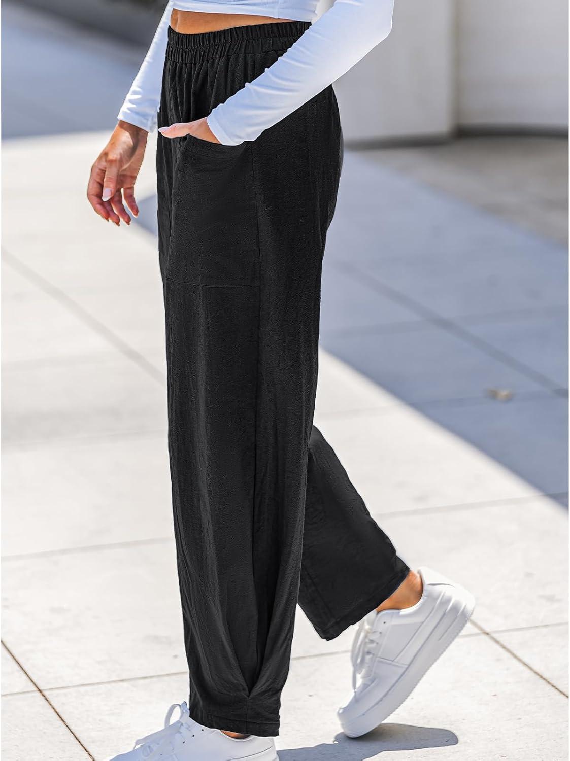 CUPSHE Women Pants High-Waisted Cargo Pant Pockets Leg Cotton Fit Coverup Elastic Work Casual Dressy(Black)