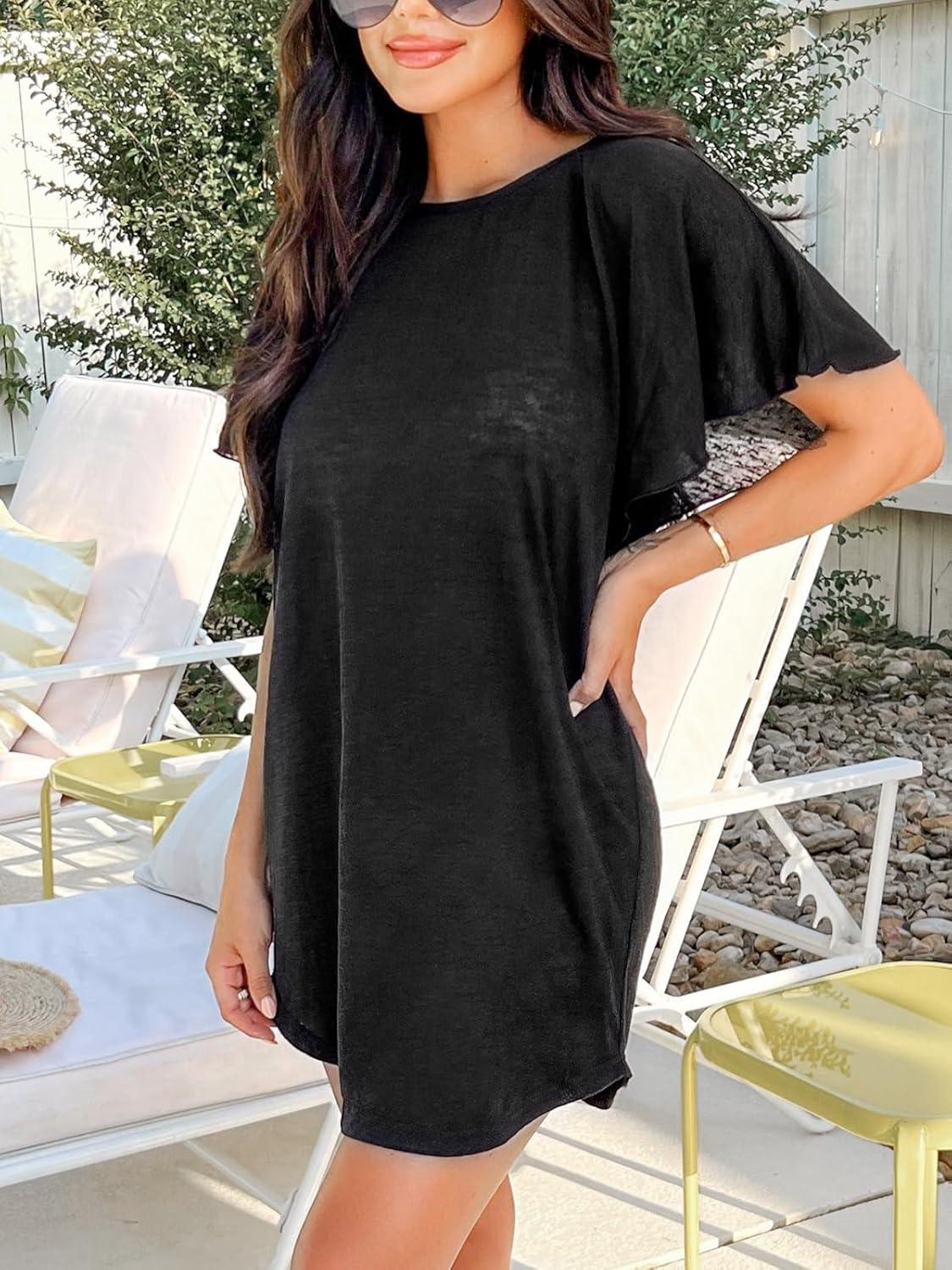 CUPSHE Women Swimsuit Cover Up Cutout Short Dolman Sleeve Beach Swimwear for Vacation 2025(Black)