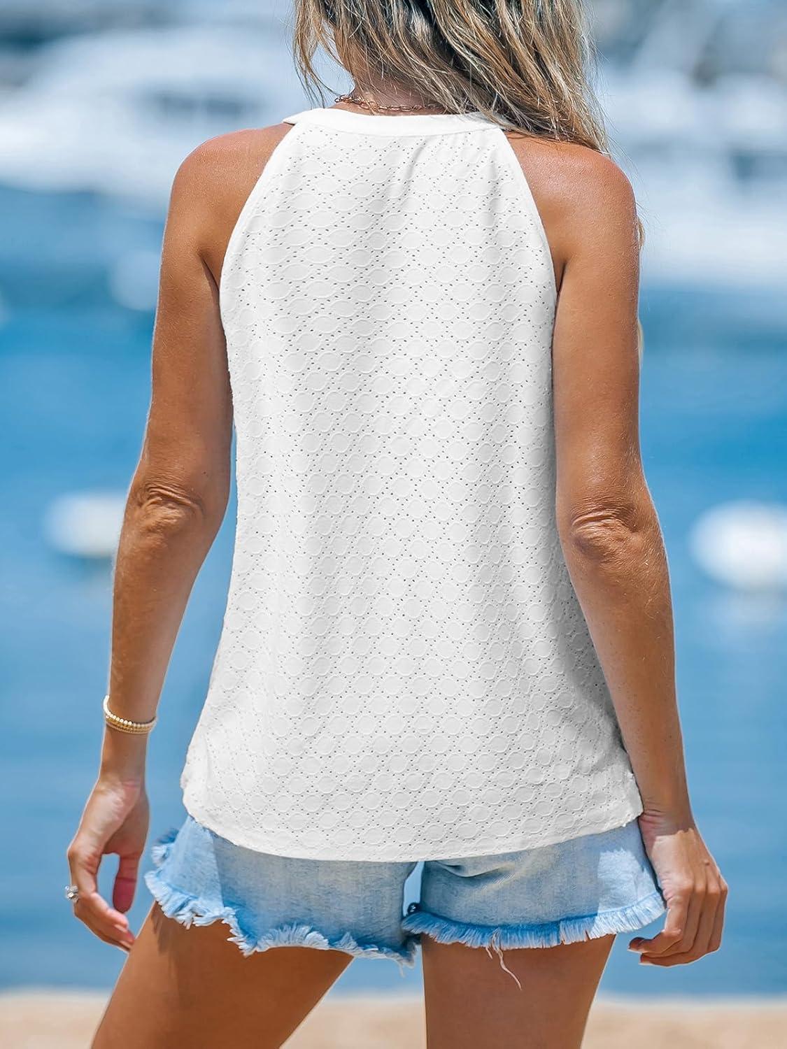 CUPSHE Women Tops Sleeveless Striped V Neck Tank Top Button Front Tee Shirt Casual(White)