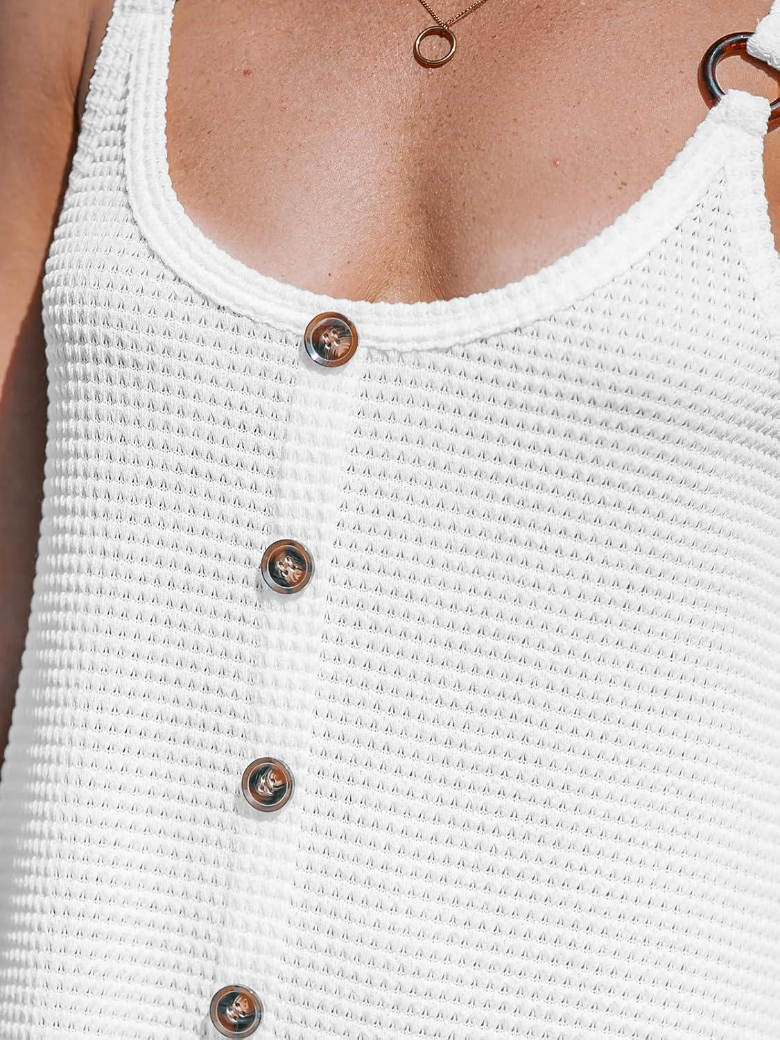 CUPSHE Women Waffle Knit Beach Cover Ups O-Ring Button Front Sleeveless Bathing Suit Coverup Dress(White)