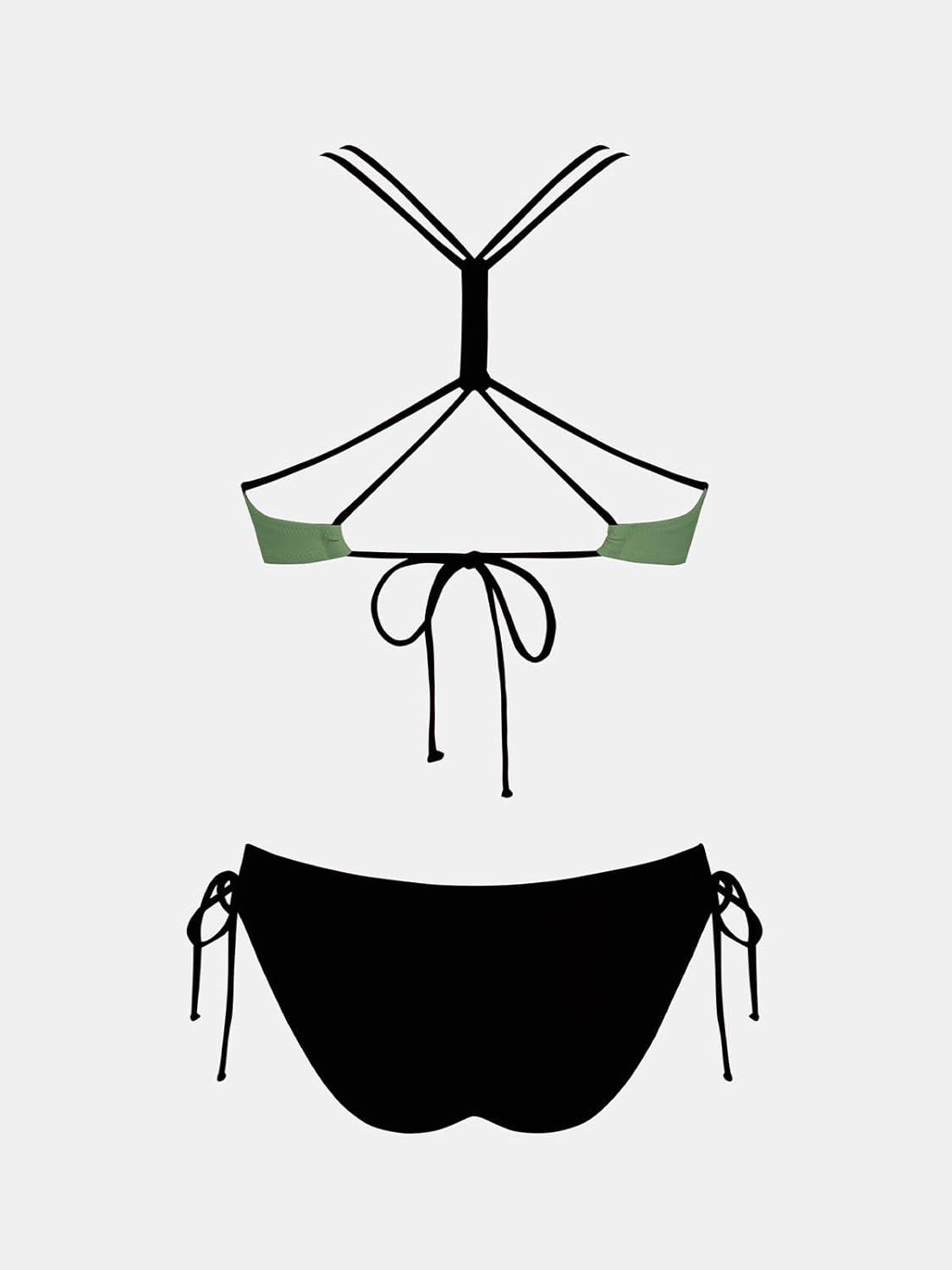 CUPSHE Women's 2 Piece Bikini Set Back Braided Straps with Reversible Bottom(Dark Green)