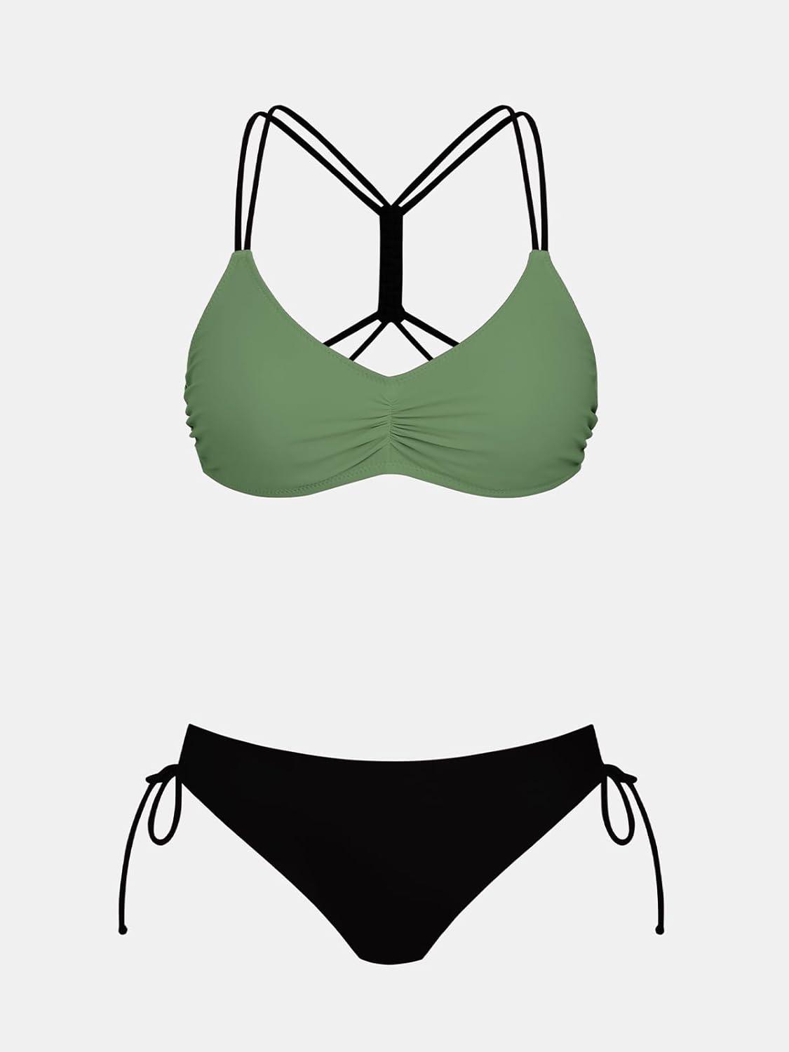 CUPSHE Women’s 2 Piece Bikini Set Back Braided Straps with Reversible Bottom(Dark Green)