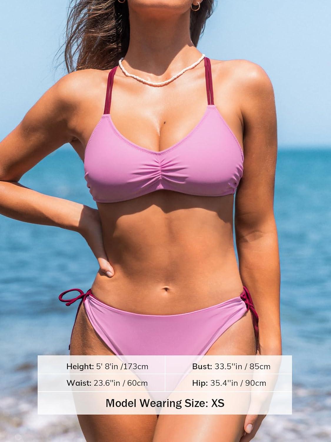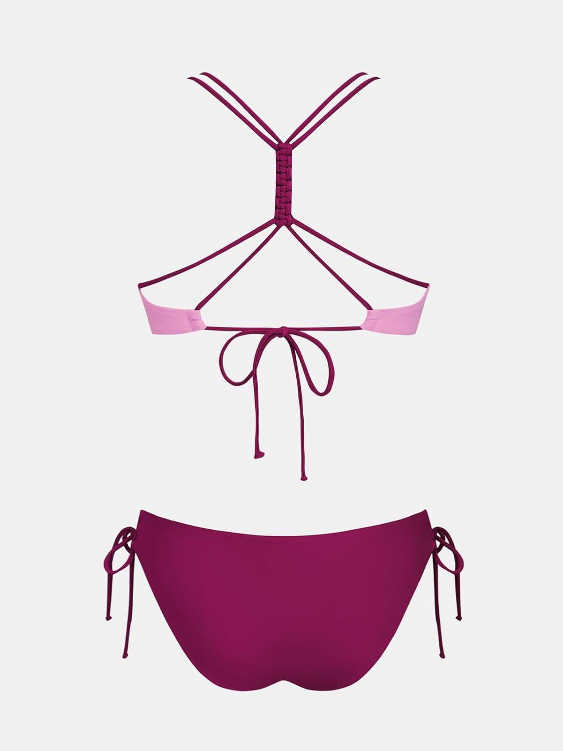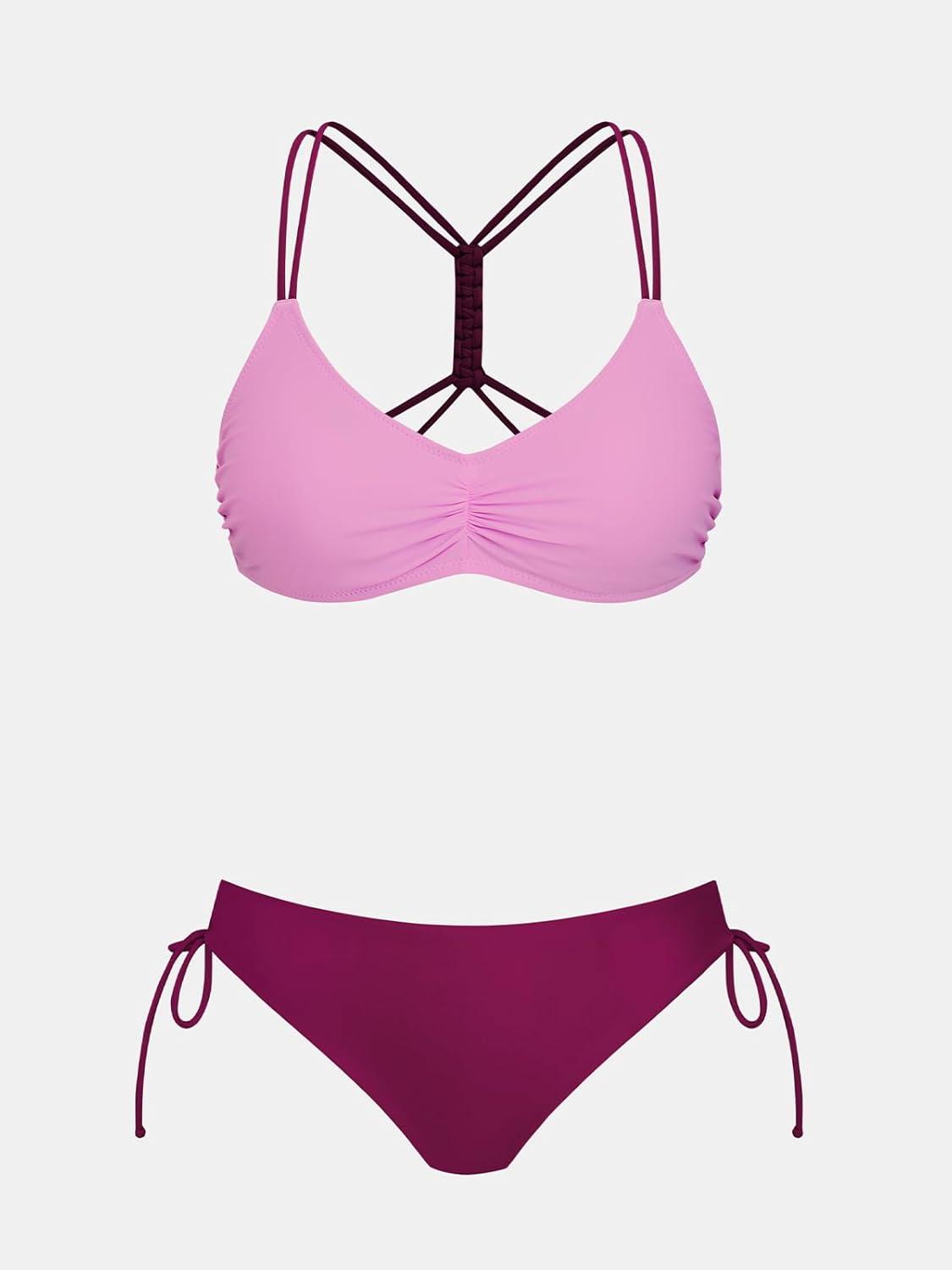 CUPSHE Women’s 2 Piece Bikini Set Back Braided Straps with Reversible Bottom(Light Purple)