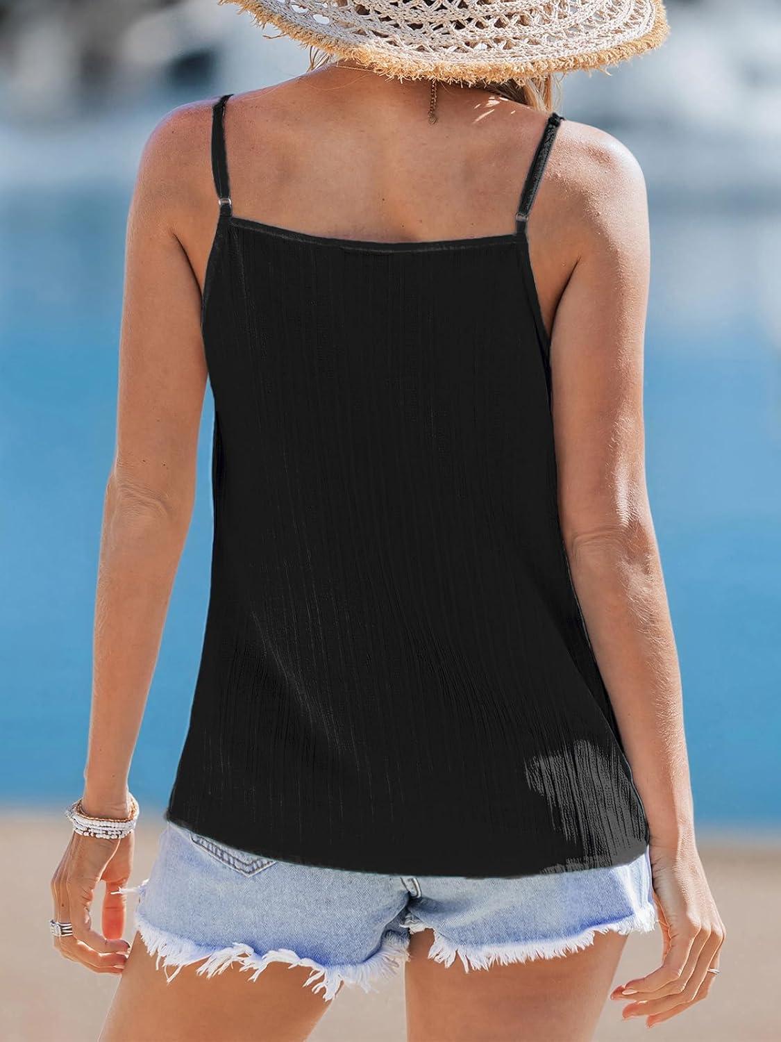 CUPSHE Womens Beach Cover Up Summer Vacation Sleeveless Button Front Bikini Bathing Suit Shirt(Black)