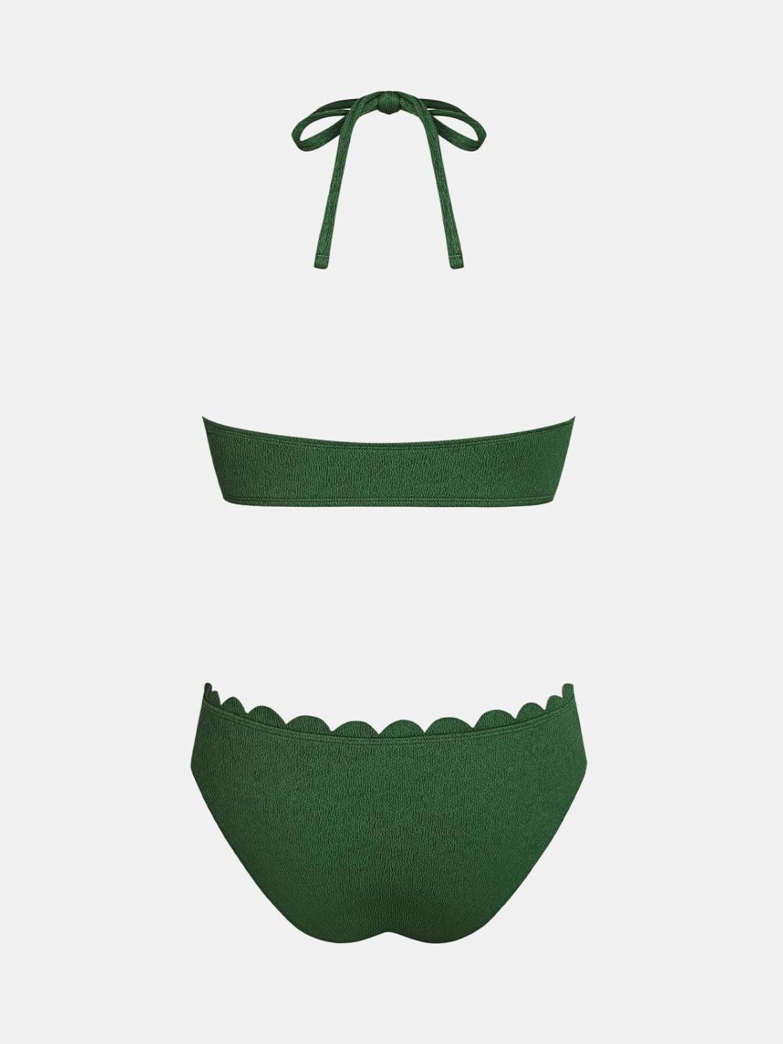 CUPSHE Women's Bikini Sets Adjustable Halter Strappy Swimsuit Crisscross Cutout Scalloped Mid Rise(Forest Green)