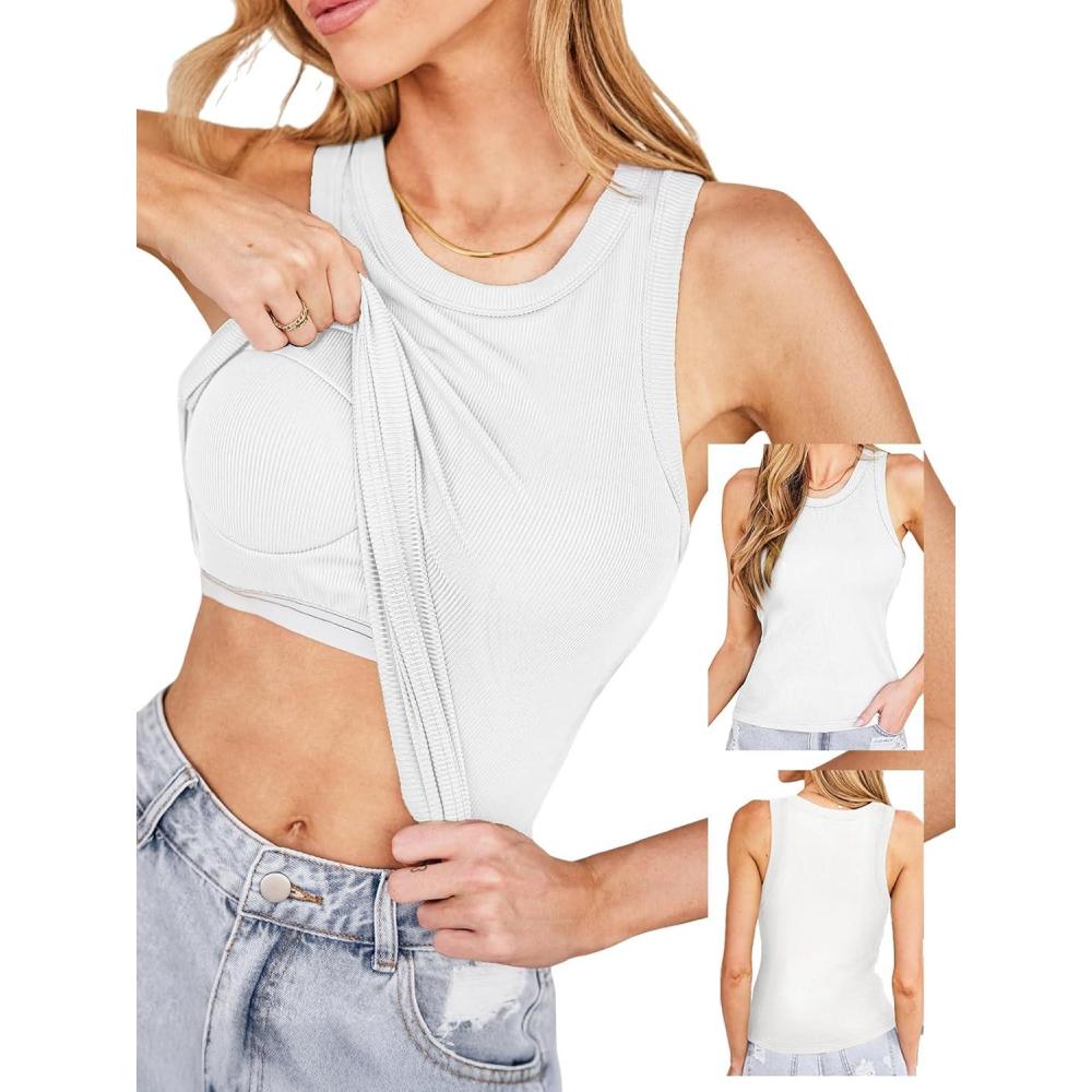 CUPSHE Womens Built in Bra Tank Tops Ribbed Sleeveless 2025 Summer Basic Tops(White)