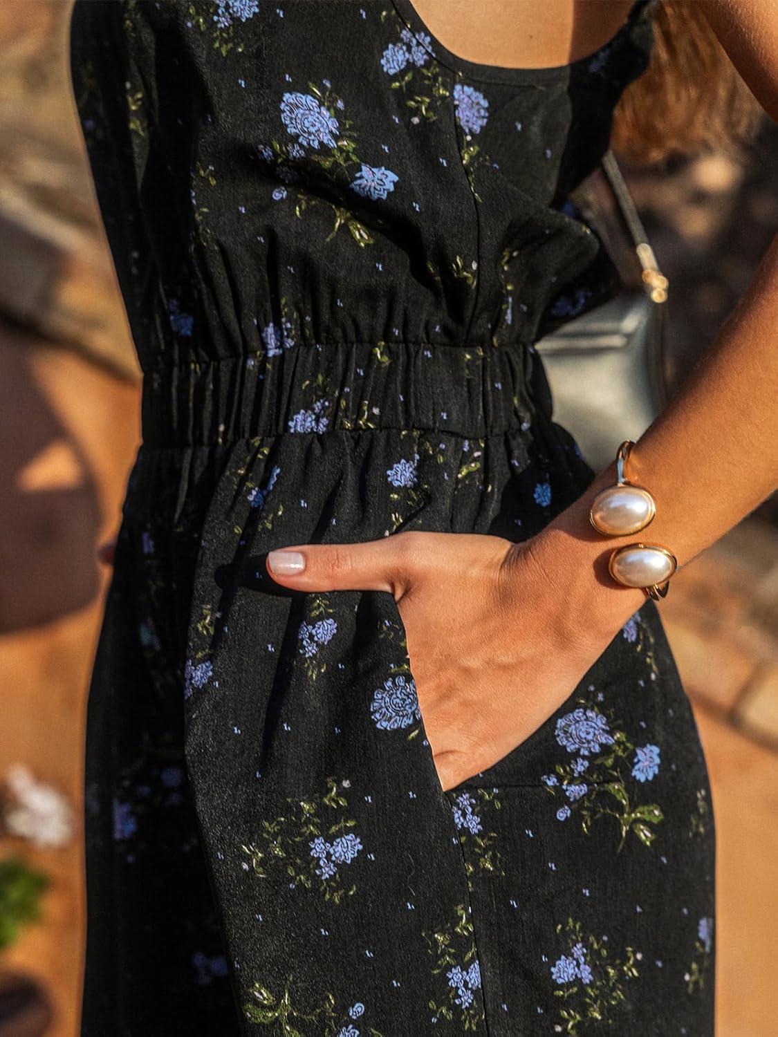 CUPSHE Women’s Casual Loose Overalls Jumpsuits High Neck Sleeveless Wide Leg Boho One Piece Rompers With Pockets(Floral Black)