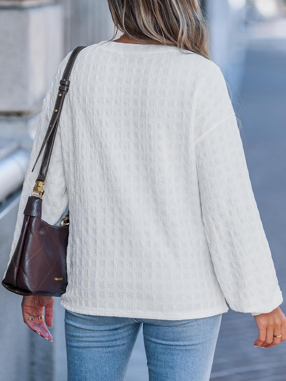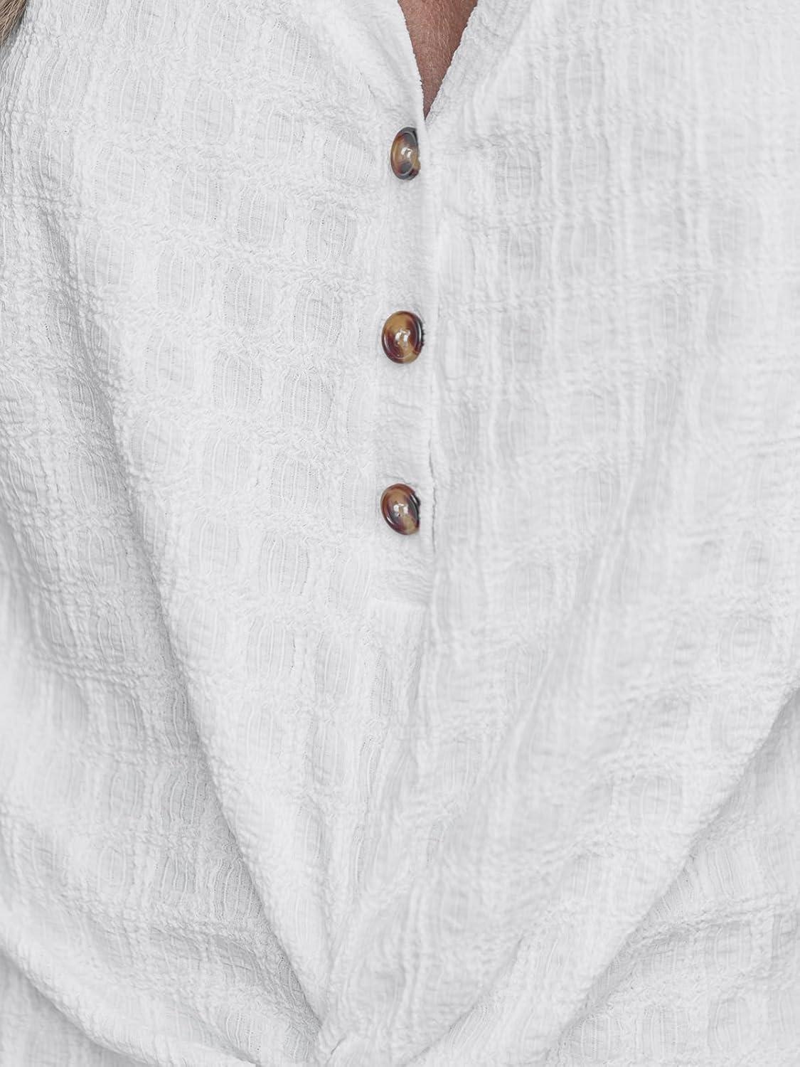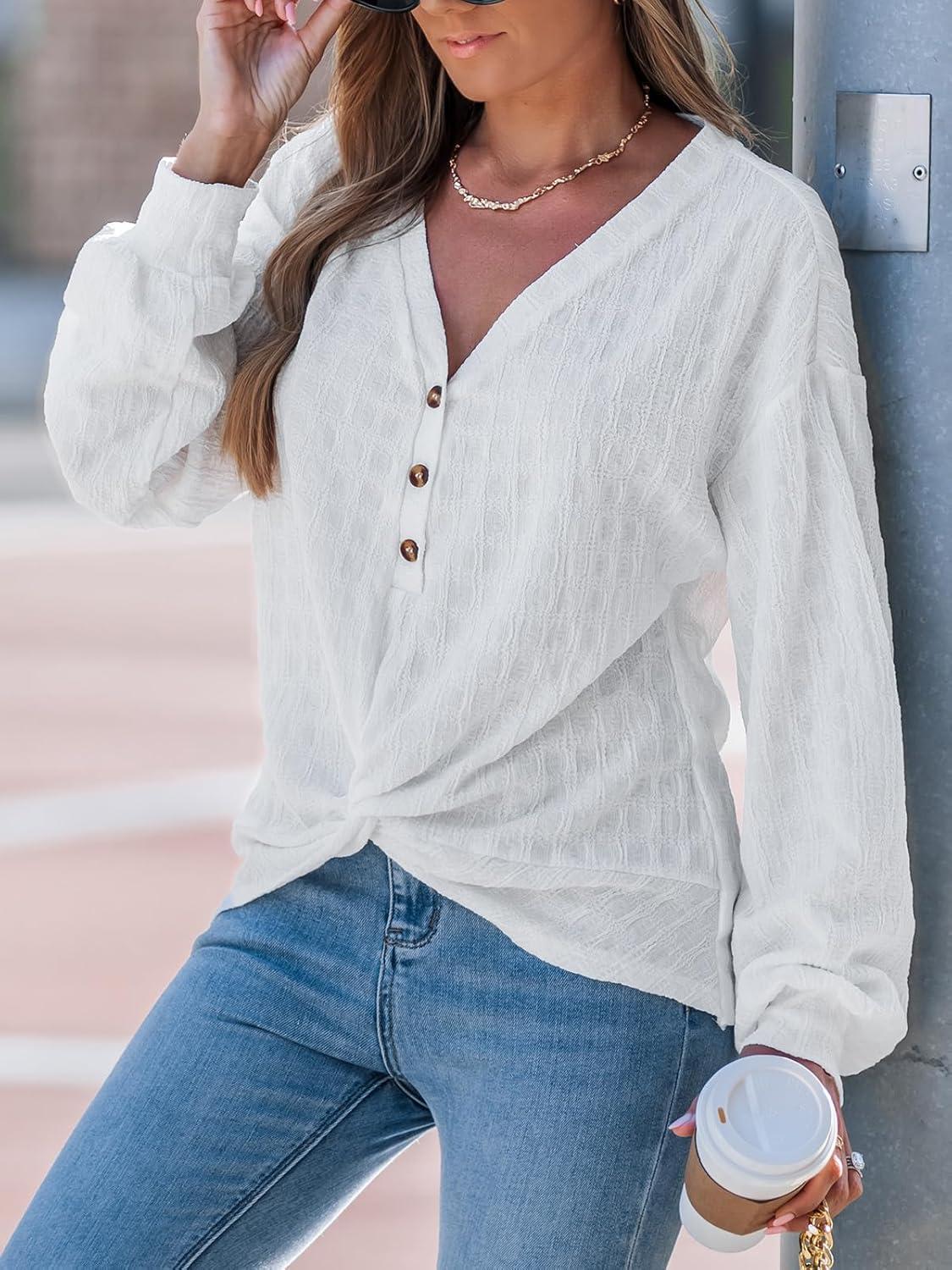 CUPSHE Womens Casual Tops Long Sleeve V Neck Twist Knot Shirts Cute Loose Fall Blouse(White)