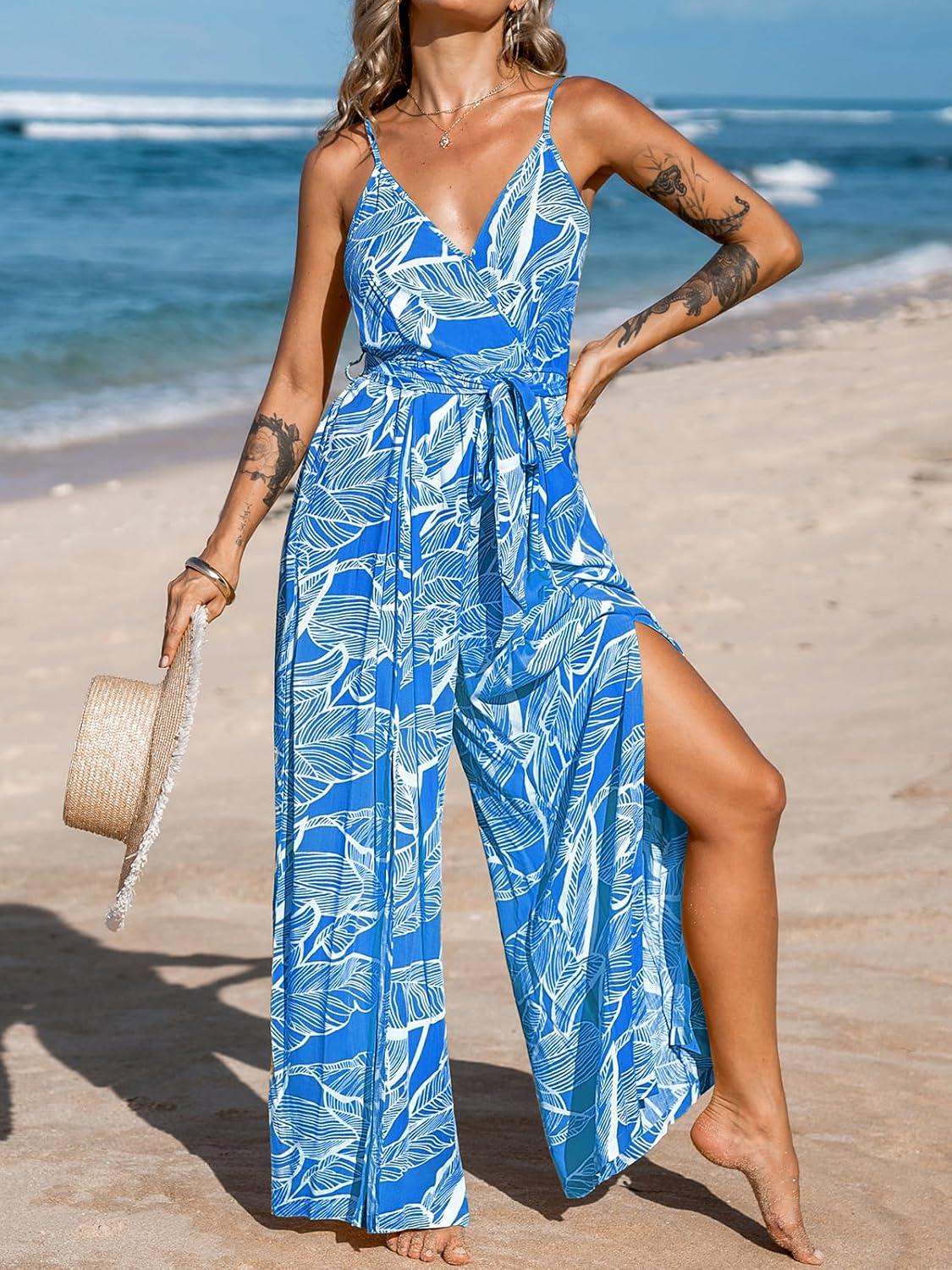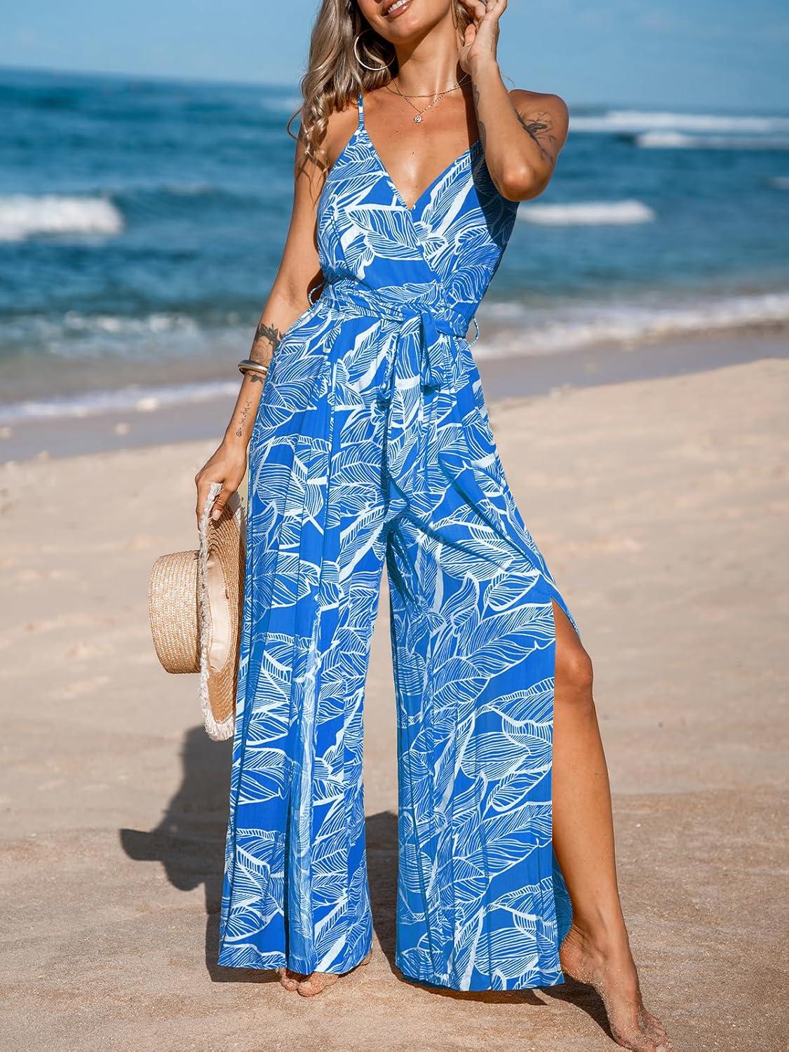 Don’t miss out on our limited-time offer: get a free {accessory} with your purchase of CUPSHE Women’s Jumpsuits Floral Tropical Wide Leg Jumpsuit Sleeveless Overall V Neck Outfit Casual(Blue).