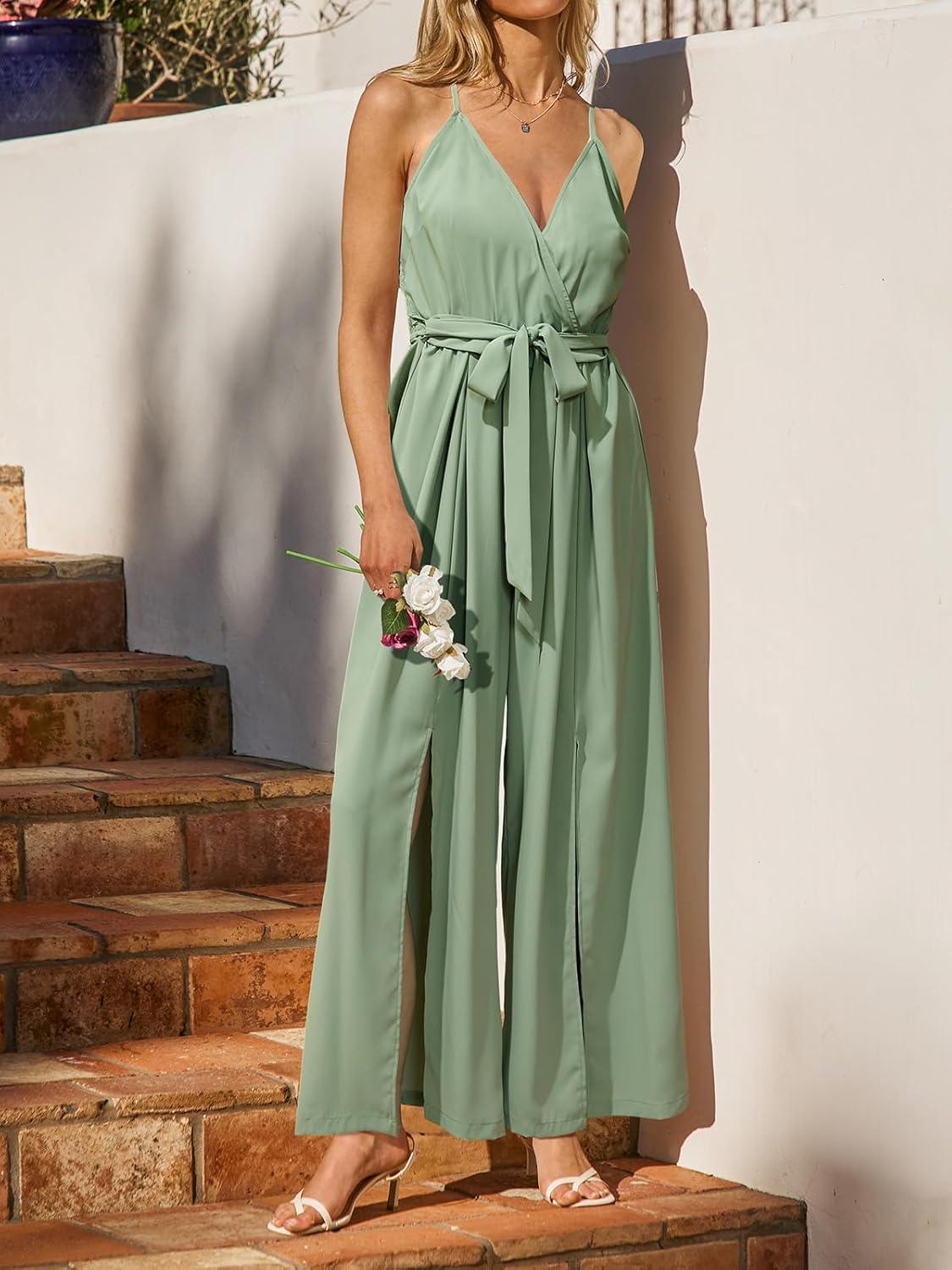 CUPSHE Women’s Jumpsuits Floral Tropical Wide Leg Jumpsuit Sleeveless Overall V Neck Outfit Casual(Green)