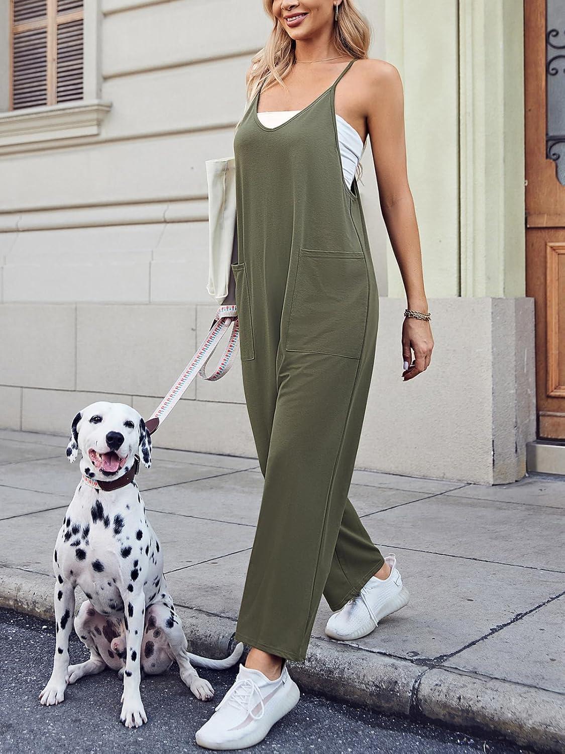 CUPSHE Women's Jumpsuits V-Neck Side Pockets Maxi Overall Sleeveless Outfit Casual