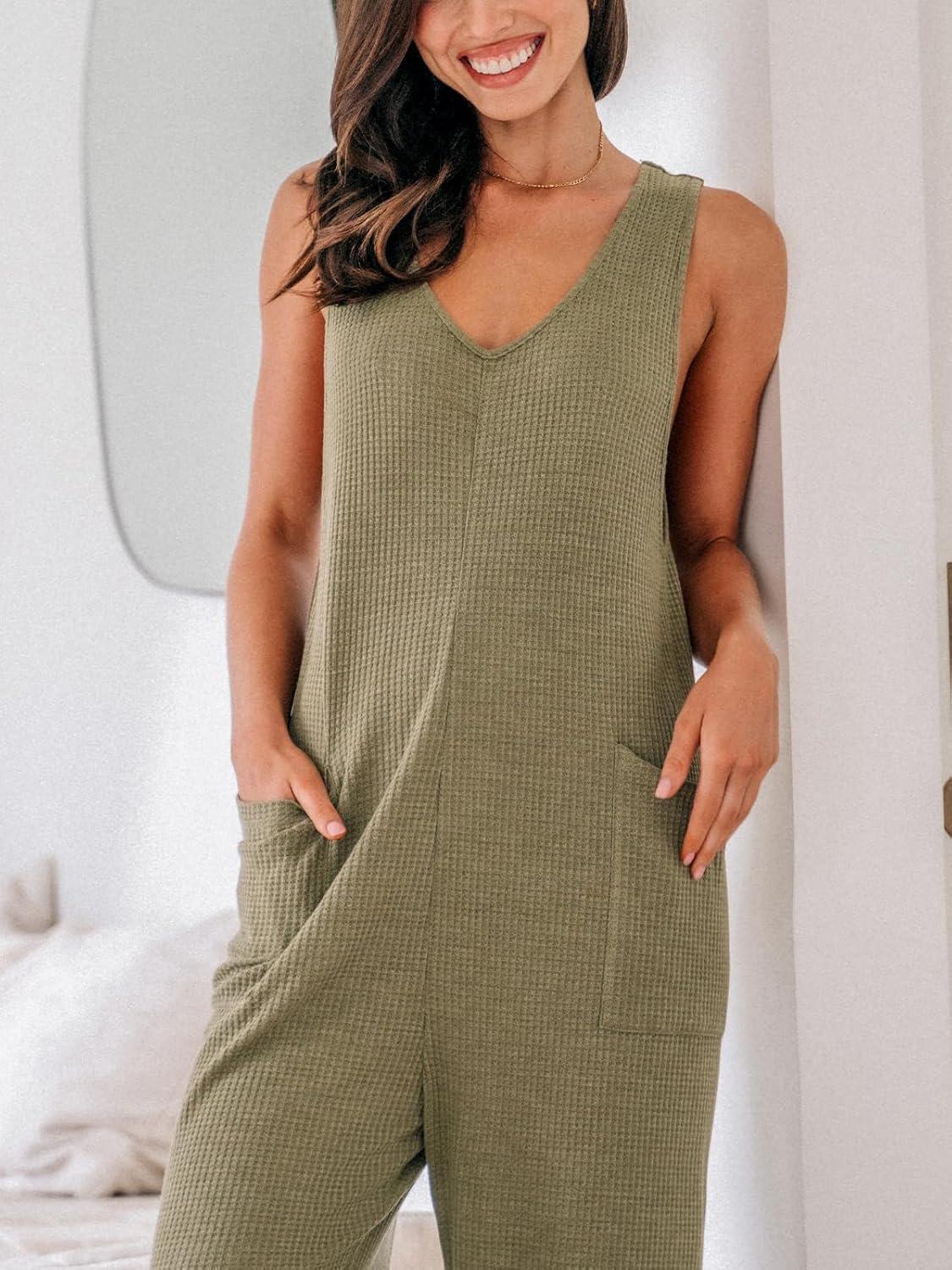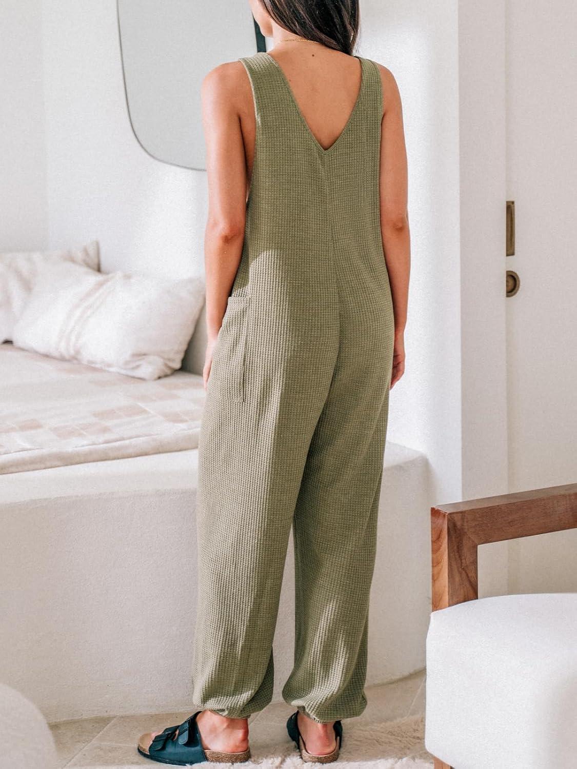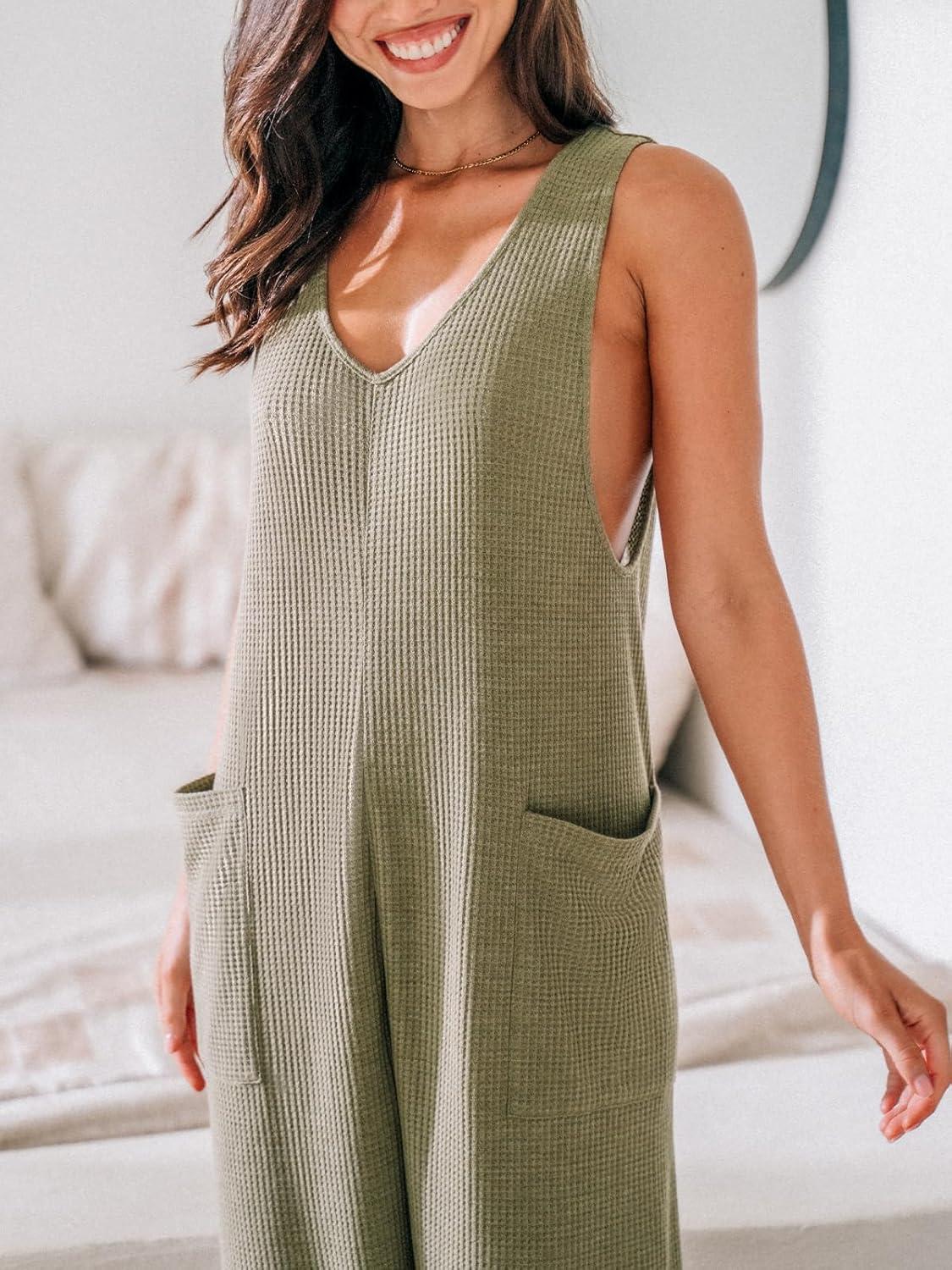 CUPSHE Women’s Jumpsuits Waffle Knit Patch Pocket Overall Sleeveless Outfit Casual