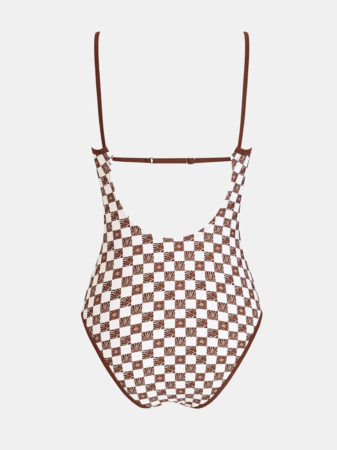 imageCUPSHE Womens One Piece Swimsuit Plunging V Neck Keyhole Bathing Suit Cutout Adjustable Straps Spaghetti Color BlockBrownWhite Plaid
