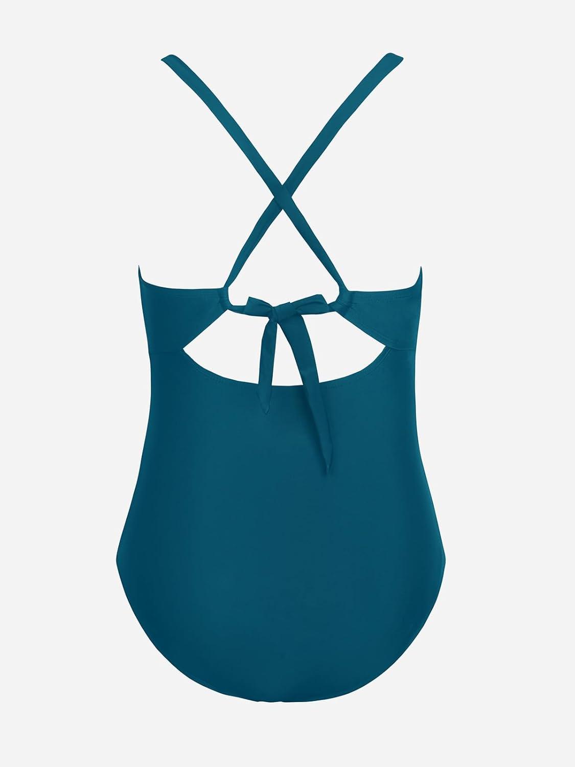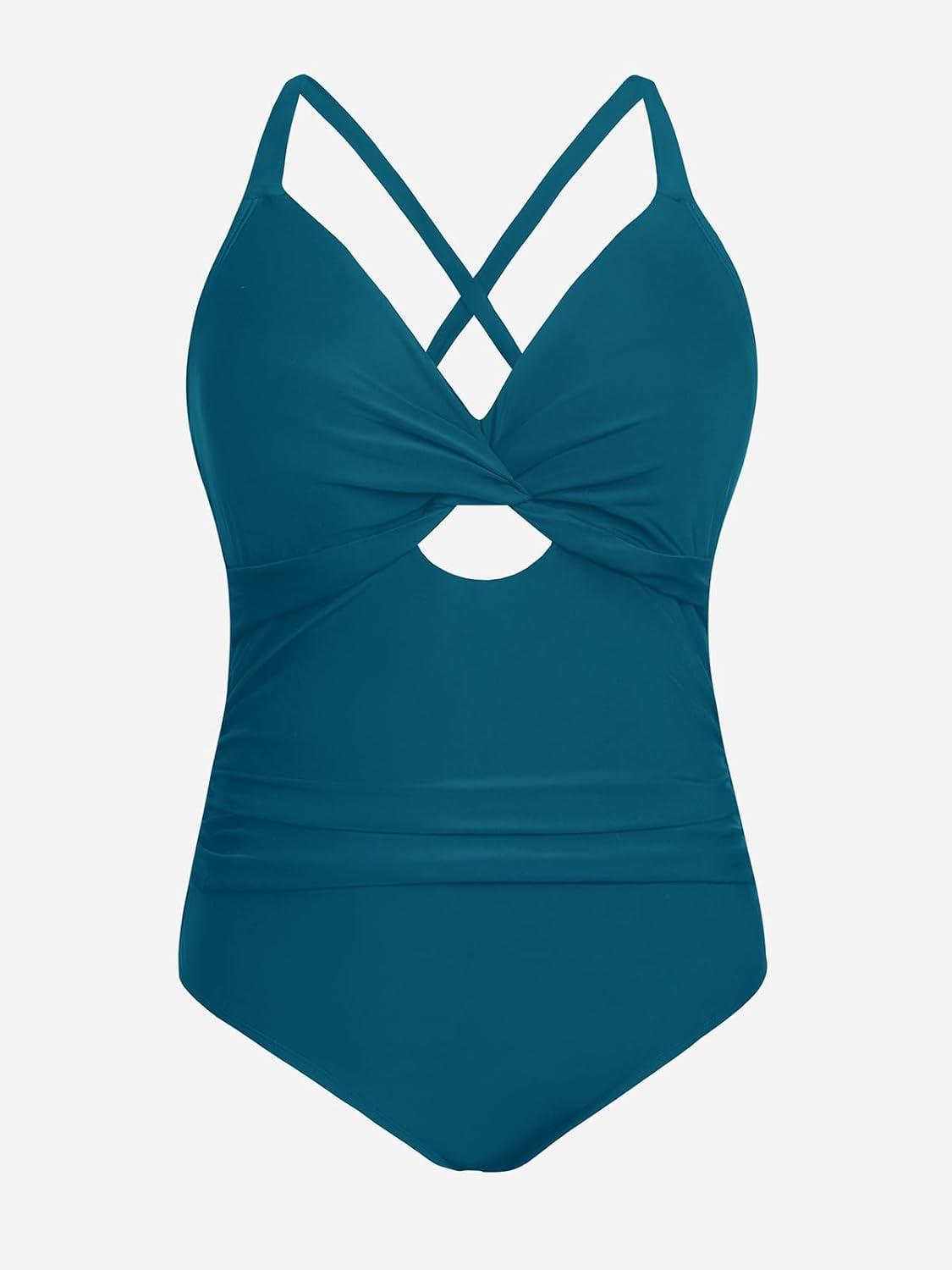 CUPSHE Women’s One Piece Swimsuit Plus Size V Neck Bathing Suit Front Wrap Crisscross Back Tie Ruched Cutout Swimwear(Deep Teal)