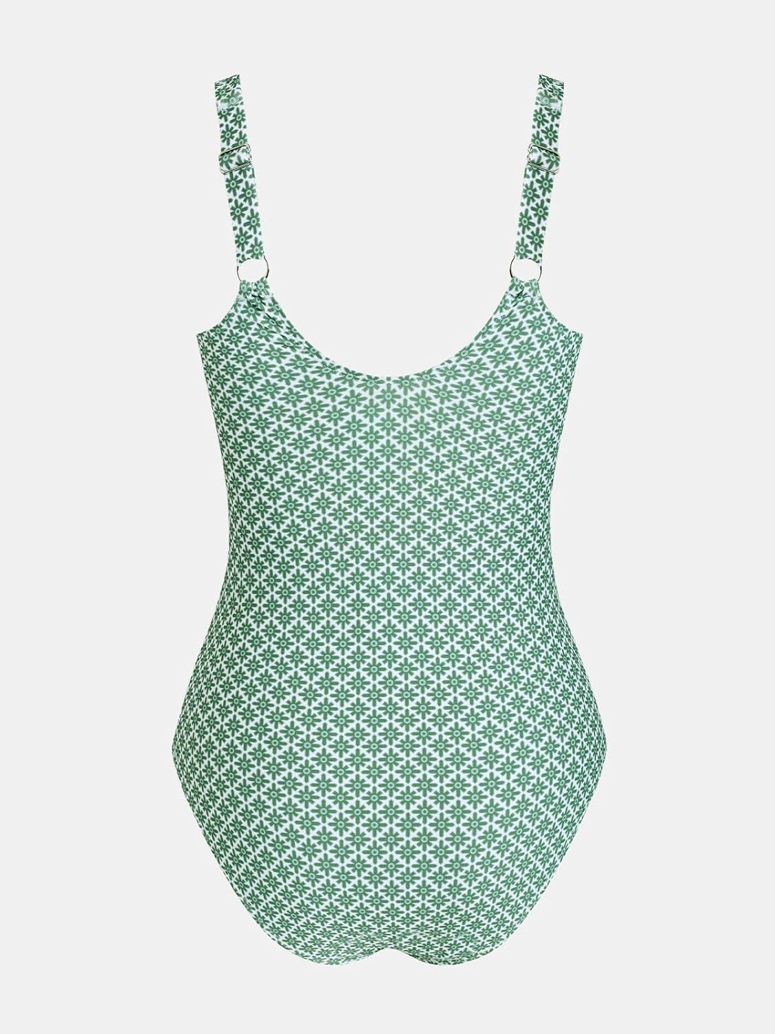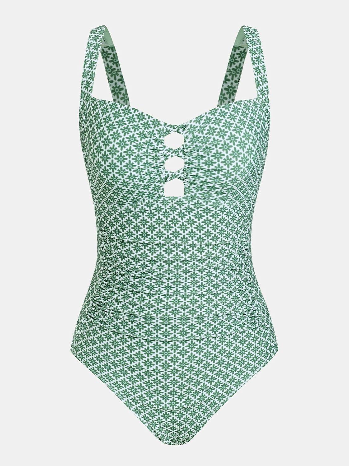 CUPSHE Women’s One Piece Swimsuit Sweetheart Neck Wide Adjustable Straps Ruched Front Keyhole Bathing Suit(Green Geo)