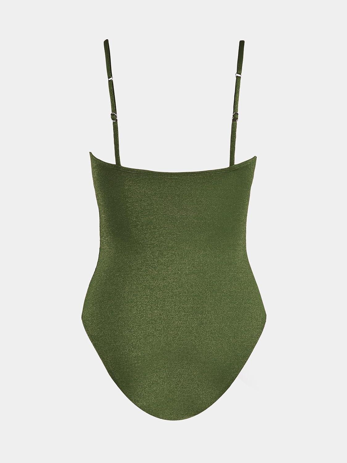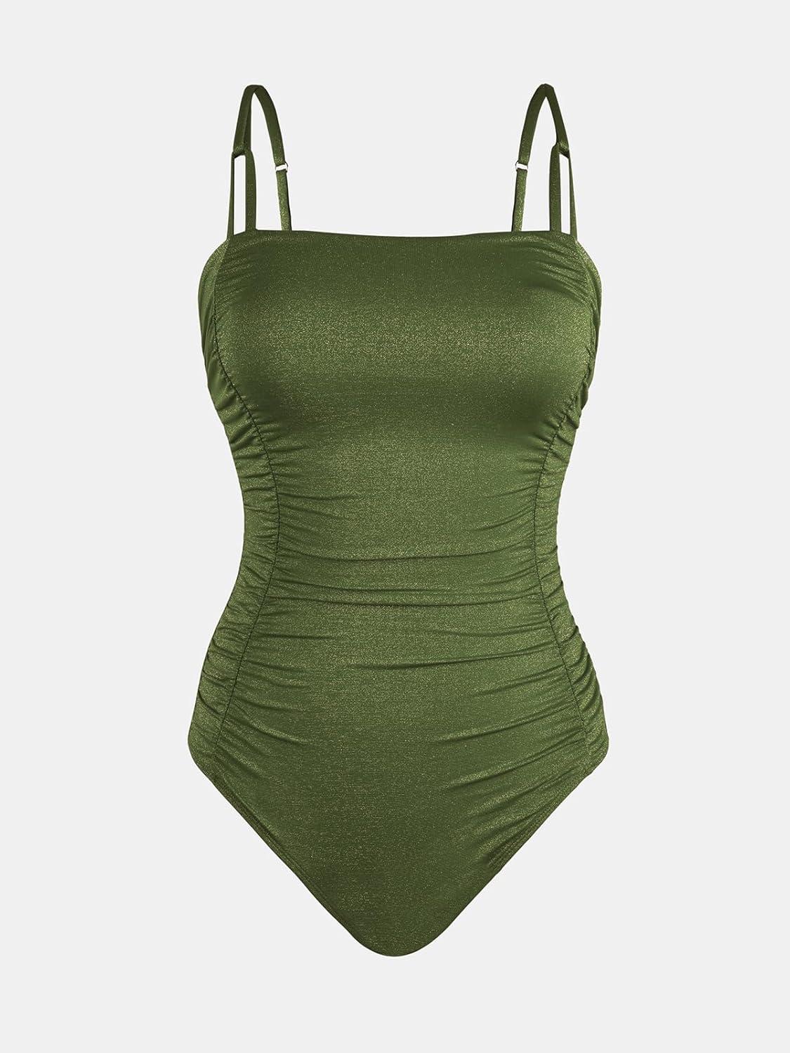 CUPSHE Women's One Piece Swimsuit Tummy Control Square Neck Bathing Suit Ruched Adjustable Straps(Olive Green)