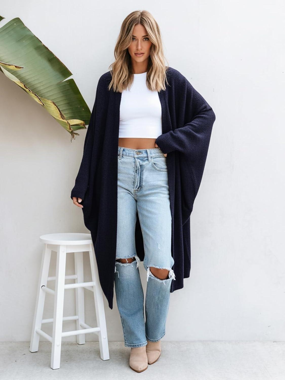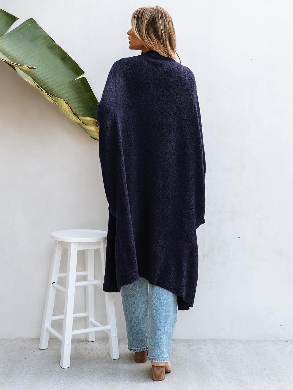 CUPSHE Women's Oversized Cardigan Sweater Open Front 2025 Fall Long Sleeve Soft Knit Casual Sweaters Outwear(Navy)