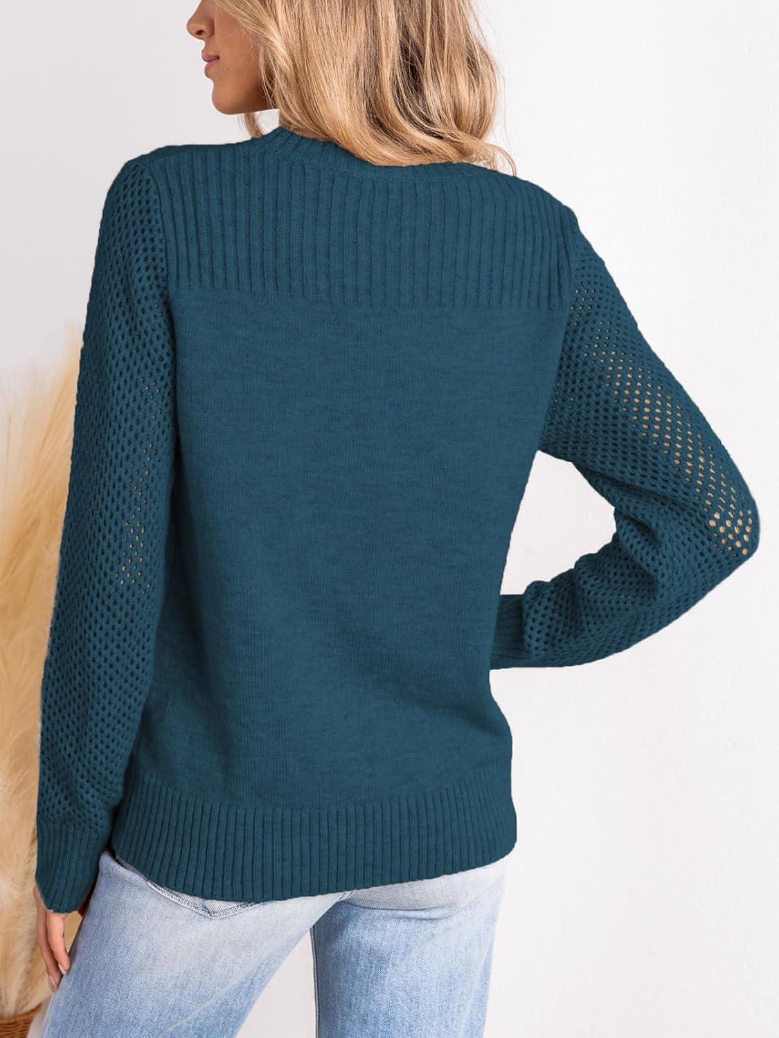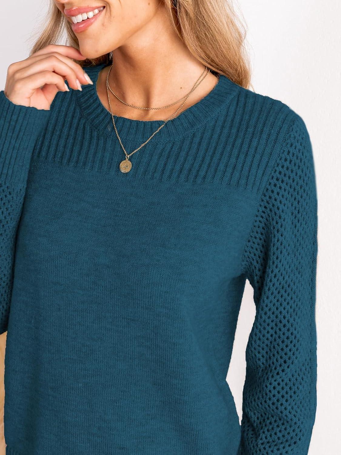 CUPSHE Womens Sweaters Casual Long Sleeve Pullover Sweaters Crewneck Soft Knit Jumper Top(Blue)
