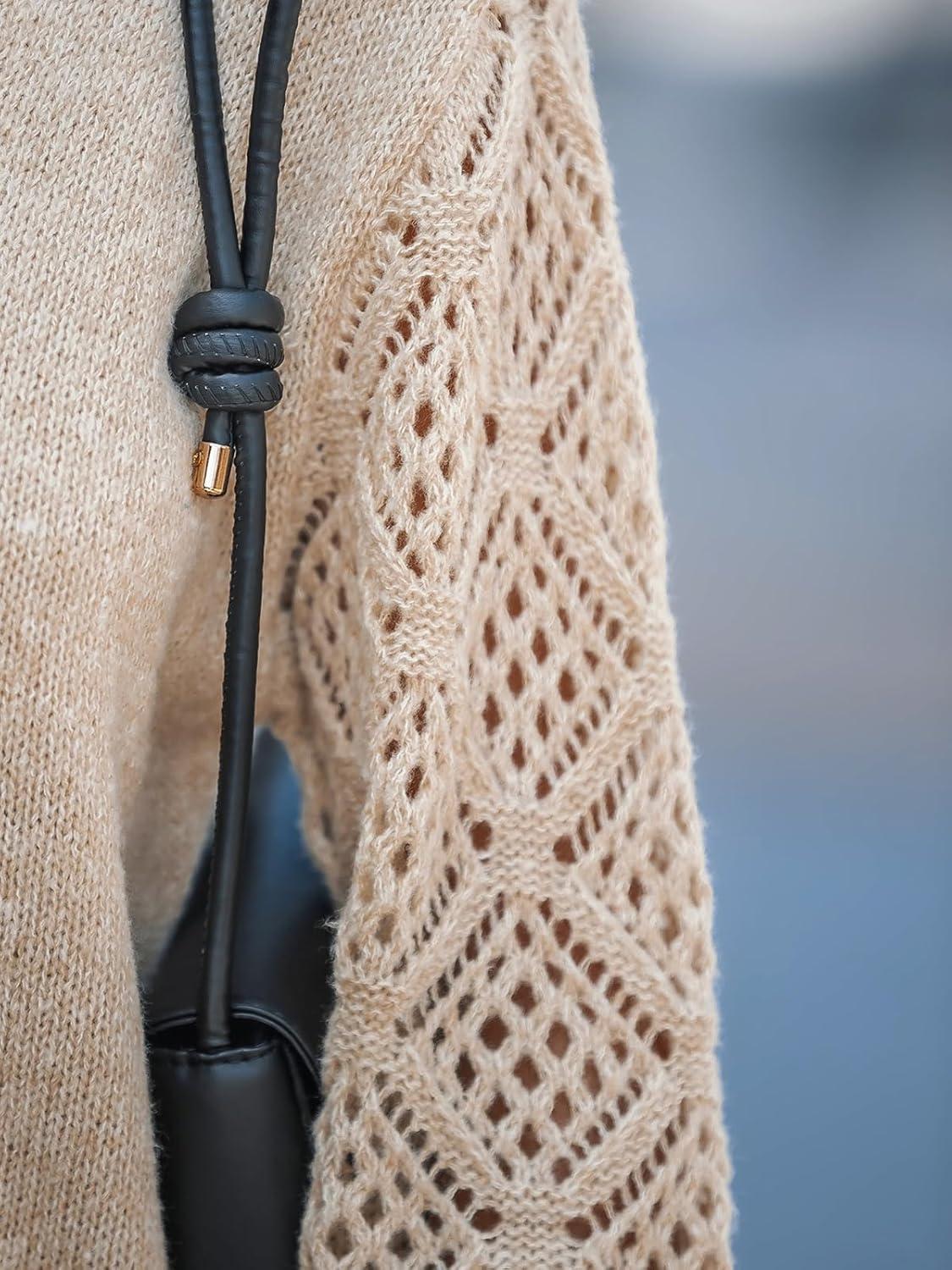 CUPSHE Womens Sweaters V Neck Long Sleeve Lightweight Soft Crochet Casual Pullover Sweater Tops(B-beige)