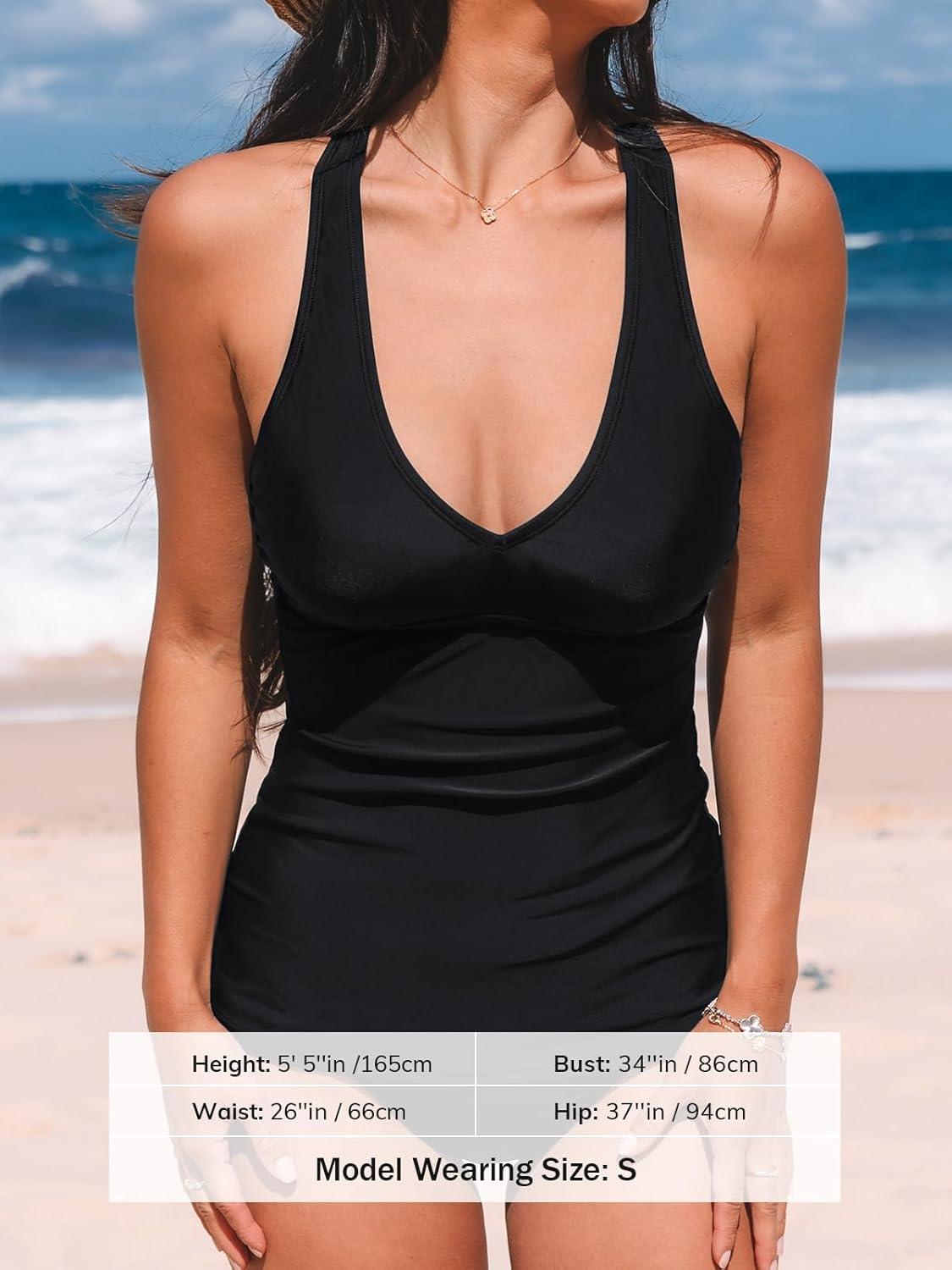 CUPSHE Women’s Tankini Sets Two Piece Swimsuit Racerback Bathing Suits Top Cutout Flowy Mid Rise Bottom(Black)