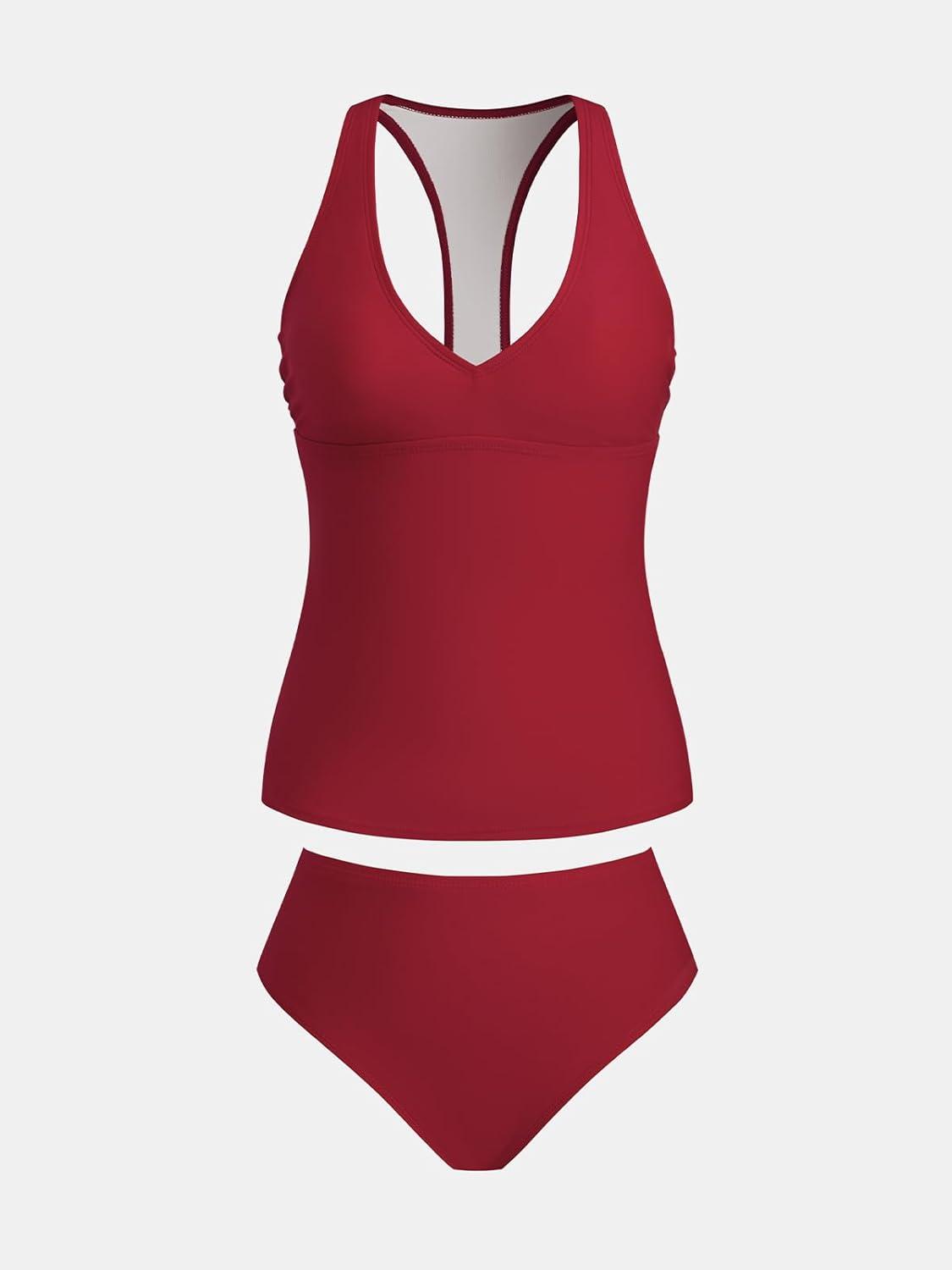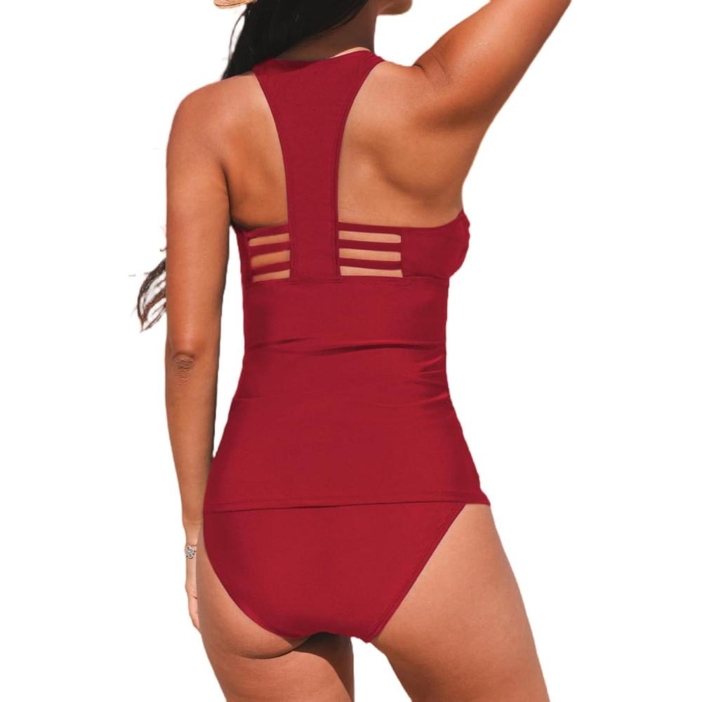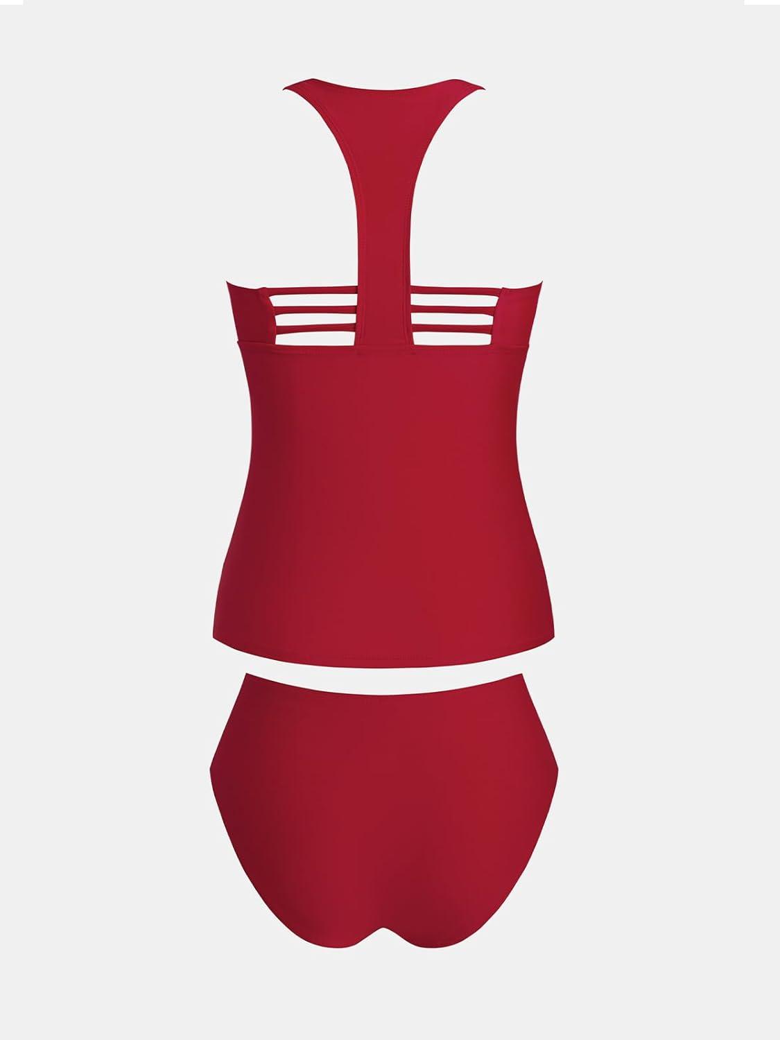 CUPSHE Women's Tankini Sets Two Piece Swimsuit Racerback Bathing Suits Top Cutout Flowy Mid Rise Bottom(Red)