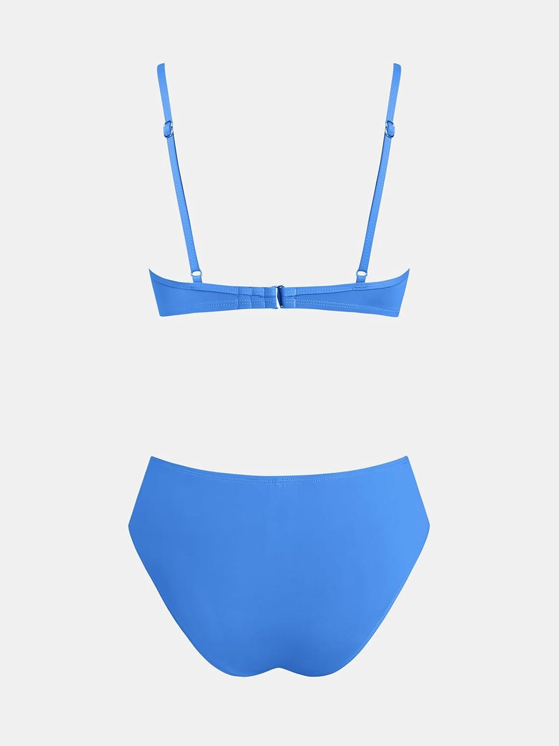 CUPSHE Women's Two Piece Bikini Sets Scoop Neck V Wire Bathing Suits Ruching Back Hook Adjustable Straps(Deep Blue)